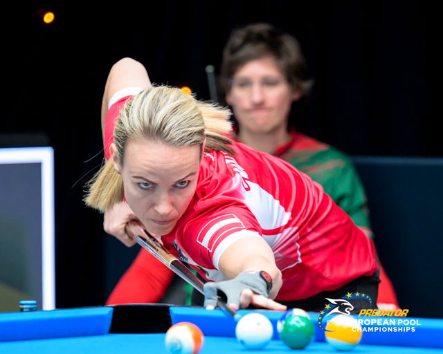 One of the sport’s biggest names has started her 2026 European Championship appearance in the 8-ball division as Jasmin Ouschan defeated Sara Rocha 6-3 yesterday and then 14.1 gold-medallist Linnea Hjalmarstrom 6-2 today.