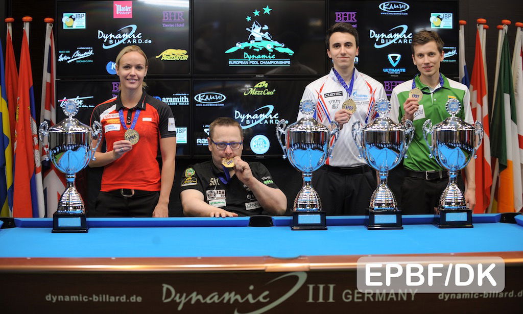 The last day of the Dynamic Billard European Championships 2019 saw the finals in the 9-ball individuals in all four divisions. The titles were grabbed by Fedor Gorst (RUS), Jasmin Ouschan (AUT), Pijus Labutis (LTU) and Jouni Tahti (FIN).
