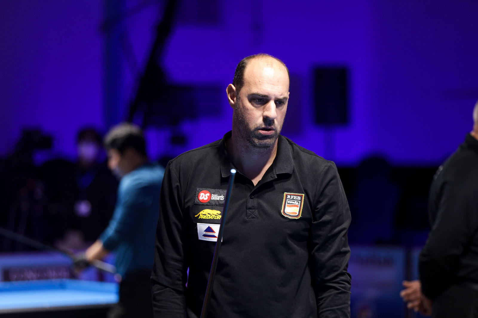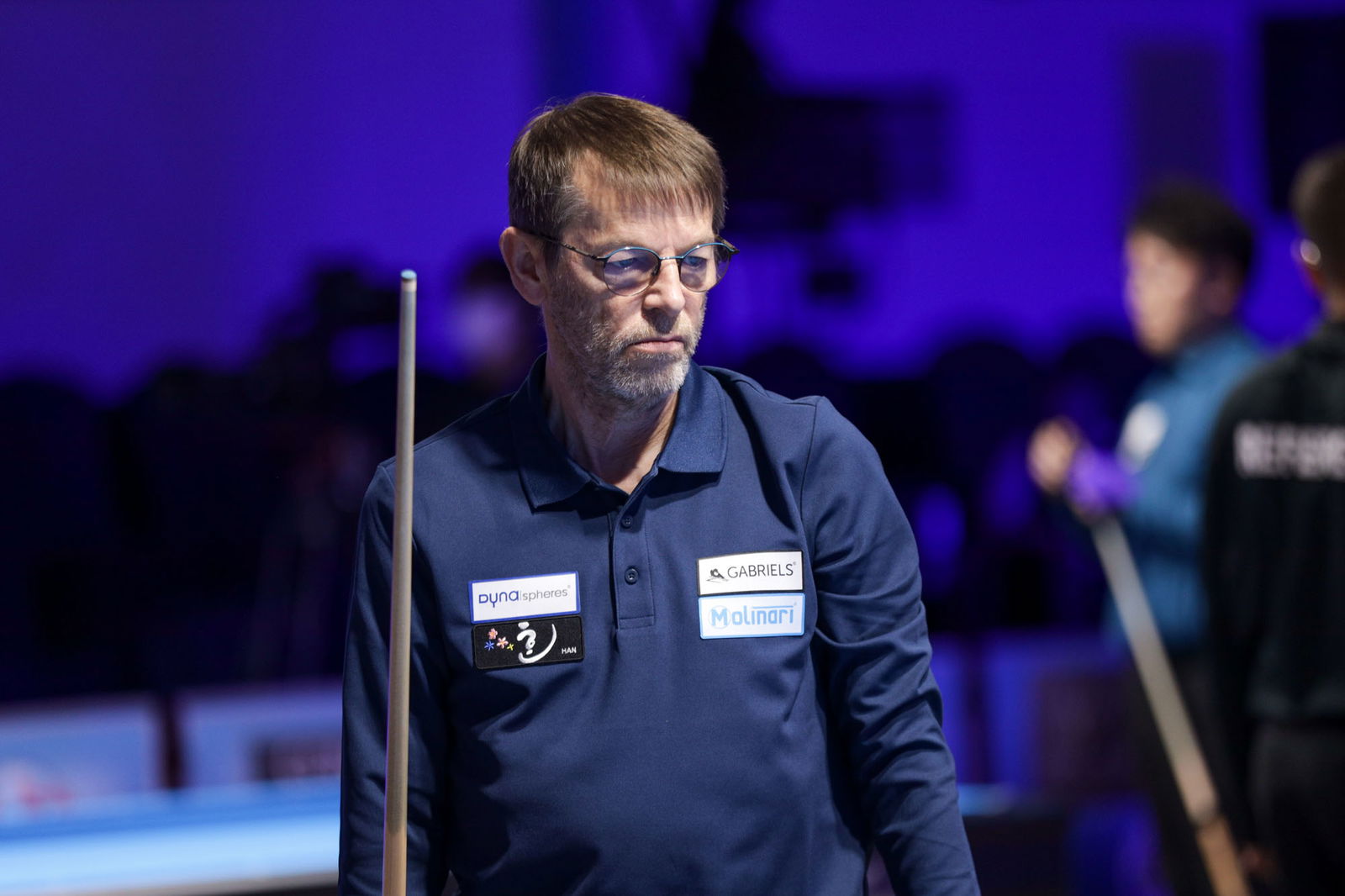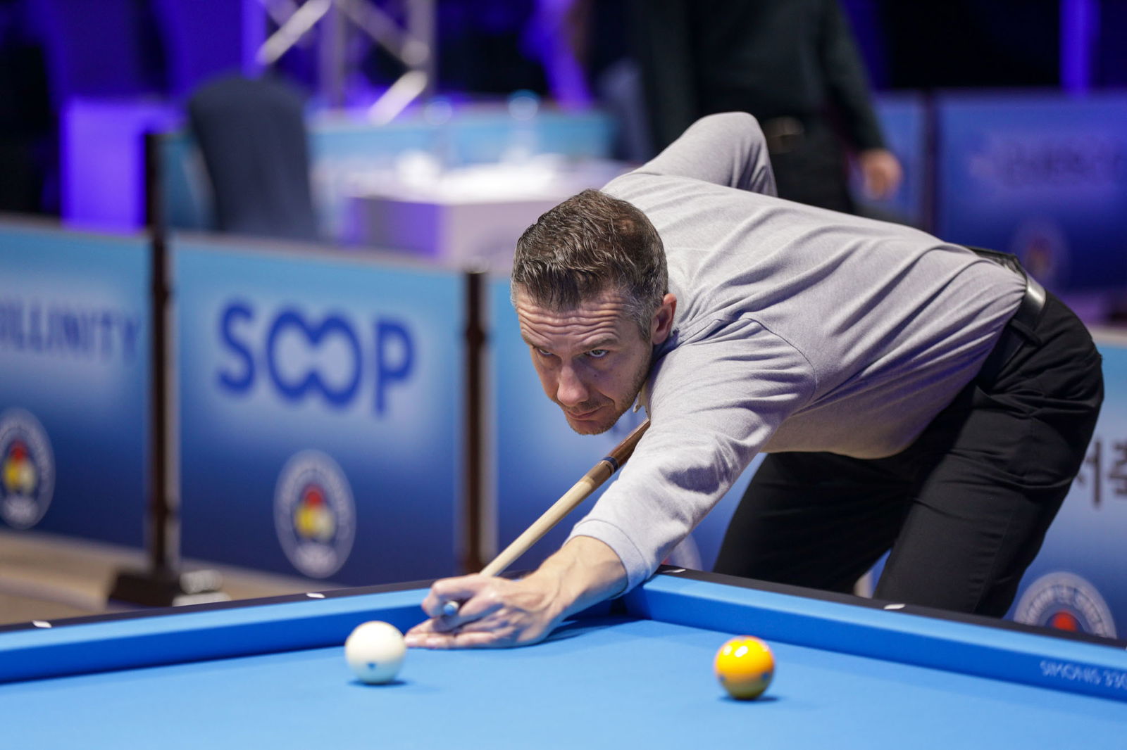 The start is typical of this entire qualifying day. Jean Paul de Bruijn has a win within reach against Ja In Kang, but is dealt a blow when the Korean makes a fantastic comeback. The Korean, who once played competitively in the Netherlands, suddenly comes back to tie with 17 and, to his delight, is able to finish the match. Ruben Legazpi sees his chance, first wins against De Bruijn (40-37 in 31 innings) and then finishes it off against Kang with a 40-35 score in 19 innings.