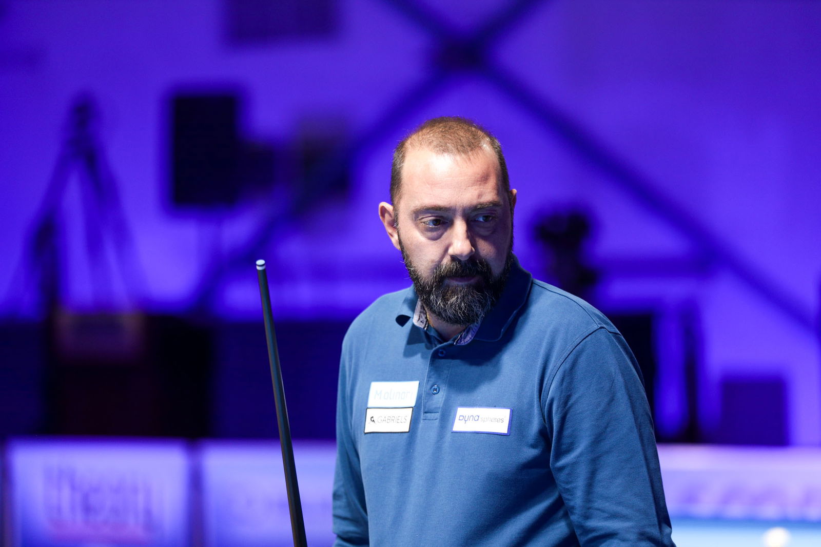 The old master fights with all his class and is rewarded. Torbjörn Blomdahl doesn't have the best start against Frenchman Mikaël Devogelaere, who wins 40-31 in 2. Because Devogelaere loses his first match to Orak (40-38 in 27 matches), Blomdahl has a chance to fight back. The Swede is cool-headed, strong on the offensive and clever on the defensive. He wins 40-24 in 16 and advances to the final draw from the group with the highest collective averages.