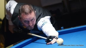 Caudron opened with a comfortable win over Mathieu Vlerick: 60 - 28 in 29. In the second round, he faced Dutchman Jeffrey van Nijnatten, who had recently made a strong impression in the Dutch Grand Prix in Vlaardingen. Van Nijnatten, who played to 50 points, must have been pleased with his average (exactly 2.000), but it was not enough. Caudron won the match 60-40 in 20 innings.