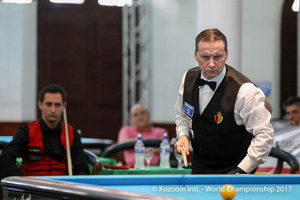 Three of the finalists on stage make a bit for their third world title. Marco Zanetti, Eddy Merckx and Frédéric Caudron won the world gold twice in their career. This Sunday afternoon (South American time 12.00, European time 17.00), first Eddy Merckx and Minh Cam Ma compete for a place in the final. Two hours later, Marco Zanetti and Frédéric Caudron will be in the ring. In case of wins by Caudron and Merckx, two Belgians fight for the gold. That only happened twice in the history of three cushion: in 1934 with two Americans, in 1938 with two Argentines.