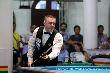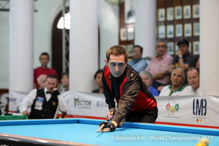 Frédéric Caudron stopped the title illusions of Dani Sánchez in a match which was dominated by the Belgium after leading 15-10 (6 innings). The contest between two of the world's best then turned into a one-way match, in which Caudron showed how brilliant he can play billiards when he is on his best. The audience (and Kozoom-watchers) were entertained by his high class: the best of all was a rarely seen point: a reverse shot along the short cushion (short-long-short, full speed, full English). Sánchez was not a shadow of himself in the final part, in which C dashed off to 40-18 in 18.