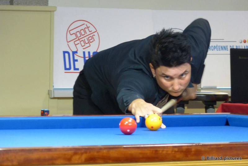 The other Dutch lady, Karina Jetten, made the best impression in the quarters, where she defeated Fendi Aysegul from Turkey 30-20 in 36 innings. The two Turkish winners in the quarterfinals didn't reach thirty caroms within the 40 innings limit. Guzin Mujde Karakasli defeated Monique Wilkowski 26-17 in 40, Gülsen Degener was a way too strong for Loes van Dansik (17-4 in 40).