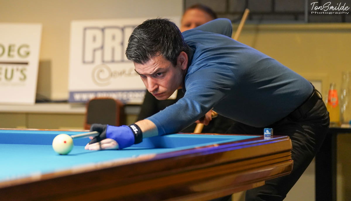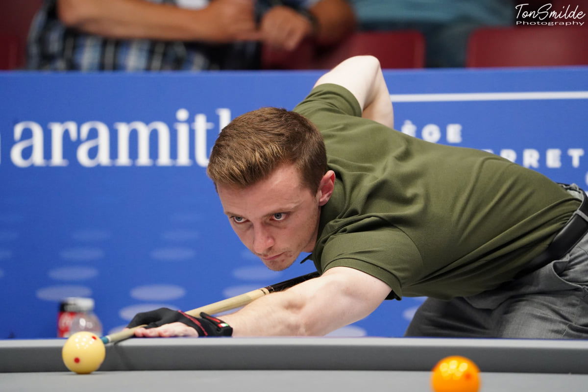 PARIS – In an evening with all the French top-division teams, Soissons maintained its lead, Saint Quentin, Andernos, and Blois Doozy are followers by just one point and Dick Jaspers emerged victorious with the best score among 40 players in ten teams. The Dutchman sharpened his form in a match against Jean Reverchon: 40-13 in 14 innings, averaging 2.857. With his Saint Quentin team, Jaspers achieved the biggest victory of this third round, defeating Courbevois La Defense with an undisputed 0-8 victory. Besides Jaspers, Johan Loncelle (40 in 34), Kévin Perrotin (40 in 47), and Nathan Duriez (40 in 34) all were successful. The home team finished with a mere 0.751 average.