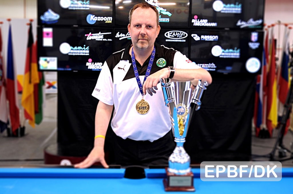 In the final match of the straight pool competition at the Dynamic Billard European Championships for Seniors and Ladies in Tirana, Albania, Vegar Kristiansen (NOR) defeated Sandor Tot (HUN) with 100:64 and took the first Gold Medal of the event.