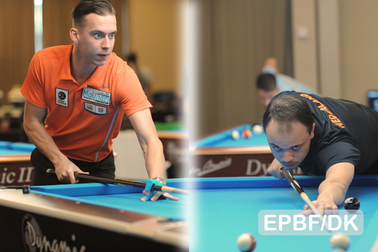 The 9-ball individuals have commenced at the Dynamic Billard European Championships for Men, Women and Wheelchair Athletes in the Salgados Palace Hotel in Albufeira, Portugal. In an exciting encounter in winner’s round 1, Marco Teutscher (NED) bested teammate Ivar Saris (NED) 9:8.