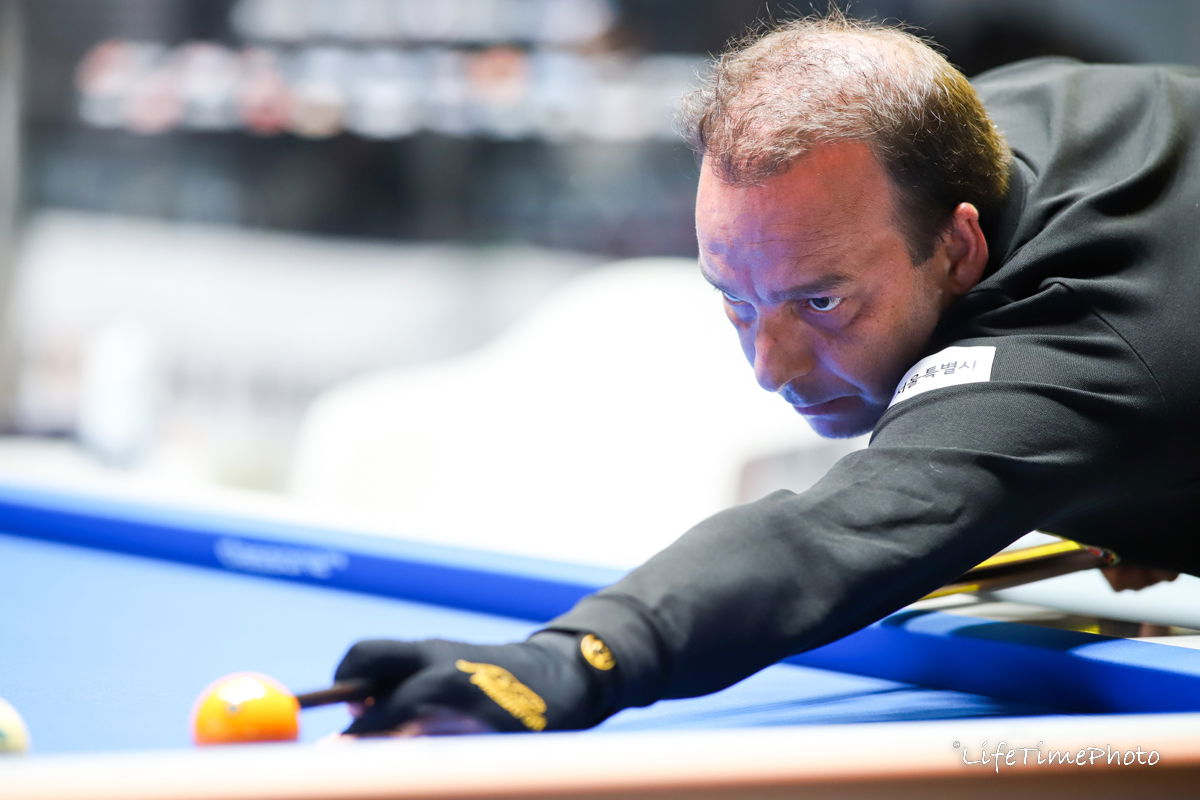 The final against Myeong Jong Cha, a player who has risen from 81st to 35th place in the world ranking list due to his enormous performance, was actually a walk-over for Dani Sánchez. The Korean shortly remained in balance with the Spaniard (9-8), but after ten innings was already put on a big margin (26-12), after which Sánchez further dominated the match and went from 38-16 to a 50-16 victory. Dani Sánchez reached the final by his victory against Dick Jaspers, Myeong Jong Cha also won in a heroic battle against Frenchman Gwendal Maréchal, one of the main European promises for the future of three cushion.