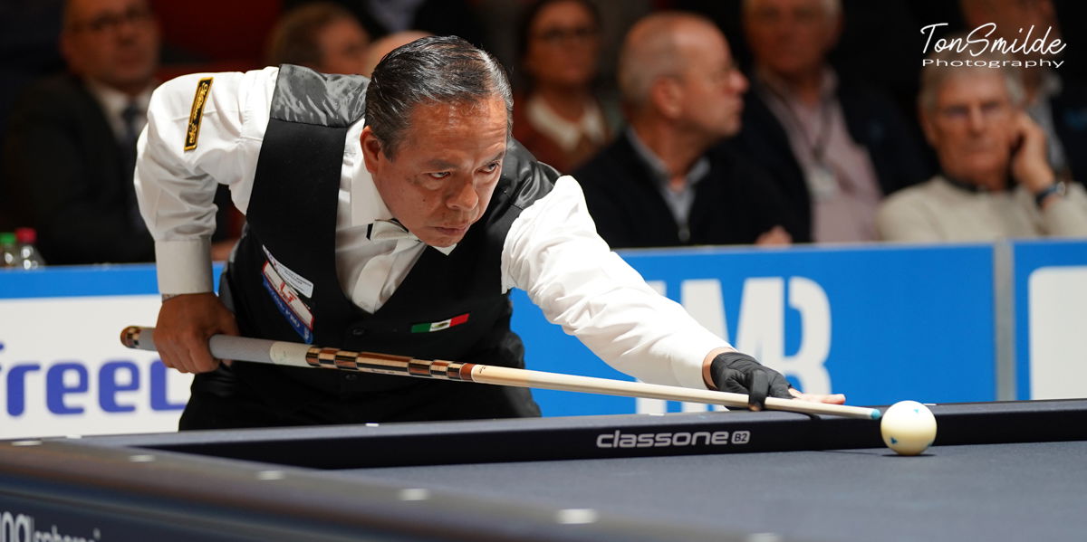 At the other table, the surprising Mexicans played a draw against Germany thanks to a very generous win by Javier Vera against Cengiz Karaca 40-6 in 20 innings. The German did not go beyond a top run of 2 with 16 zeros in 20 innings, Vera scored an 11 and remained unbeaten in his two matches after the first win against Jung Han Heo. Martin Horn, the German leader, beat Hernandez 40-29 in 25.