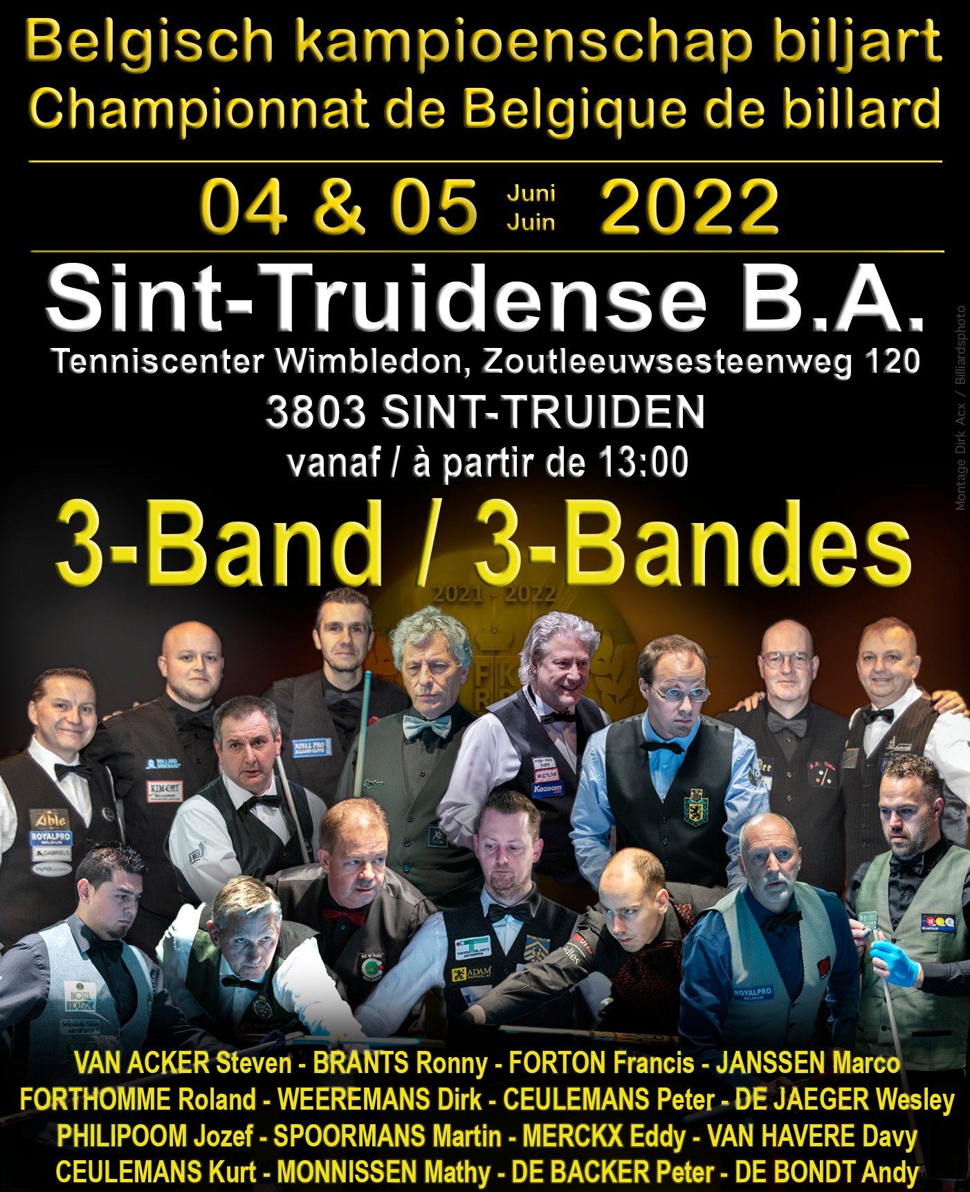 For years, the championship was part of the Belgian Multi Championship, which was cancelled and rescheduled this year. The Sint Truidense Biljaracademie was founded in 1977. Its president is 89-year-old Guy Kuppens, who unfortunately has not been at the club since the Covid crisis. The club is now led by a daily board with Johnny Sacré, vice-president, Benny Beelen, secretary and Patrick Engelbos, finance.