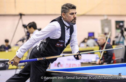 Among the sixteen winners on Wednesday were five Europeans: the Turks Murat Tüzül and Ahmet Alp, the Swede David Pennör, Spaniard Juan David Zapata and Dutchman Barry van Beers. Murat Tüzül played the best match of the day facing Vietnamese Thanh Pham and beat him 30-8 in 11 innings and a run of 13. Hyun Il Kim, Sung Il Yeong and Gökhan Salman also performed in excellent matches. Tüzül had a moderate second match against Yusuke Mori, which he lost, but thanks to the strong start the Turk went along to the next round.