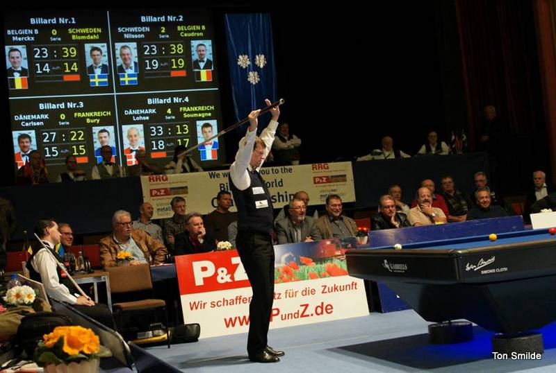 VIERSEN - On the second day of the World team championship in Viersen, four of eight teams have already advanced for the final rounds. The Belgians Frédéric Caudron and Eddy Merckx outplayed nine-time world champion Sweden in their group. The Netherlands finished on top in Group B ahead of Korea and Vietnam, Denmark defeated France and Turkey survived its group stage after a poor tournament start.