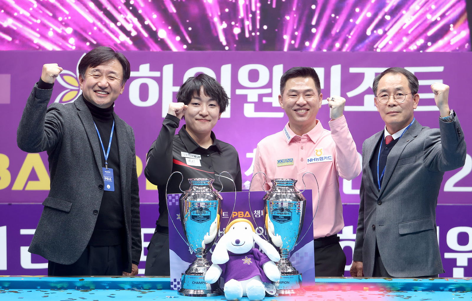 Natsumi Higashiuchi, who gave a victory speech in fluent Korean (Korean language studied at the University of Tokyo) had quit billiards for some time in the years after her world title in the UMB, but returned to the PBA. There, she achieved her first major success in this tournament in the final against Min-joo Baek (4-1, 0.945/0.556). In the semi-finals, the Japanese won against Bo-mi Kim 3-2, Min-joo Baek beat the big favorite Ga-young Kim 3-0.