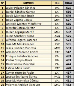Tras Dani, la medalla de Plata fue para Rubén Legazpi (1,563), El jugador madrileño relizó un gran campeonato y solo cedio en la final ante el campeón. Las medallas de Bronce fueron para Javier Palazón (1,512) y Antonio Montes (1,532). Ambos protagonizaron la final del pasado torneo en Astorga y de nuevo suben al podio.