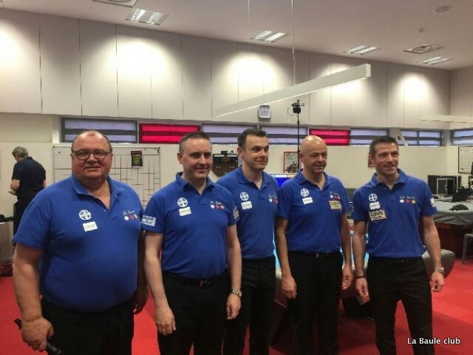 En el descanso, La Baule ya vencía 4-0 tras las victorias de Jean Paul de Bruijn y Mikaël Devogelaere. El holandés y Jean-Christophe Roux estaban parejos con 33-32 en 18, De Bruijn estuvo mejor en la parte final y decidió el juego a su favor en 38 entradas. Mikaël Devogelaere estableció su ataque contra Jean Reverchon cuando el marcador señalaba 22-21 con dos series de 7. Luego abrió su camino a la victoria con 1.667 de promedio: 50-31.