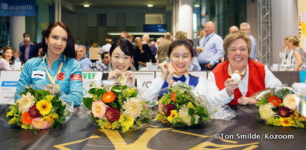 La japonesa Orie Hida, de 41 años, fue la primera campeona del mundo en tres bandas para damas. Trece años después, estaba de nuevo en lo más alto del podio en Zoersel (Bélgica). La japonesa ocultó sus emociones intensa y modestamente mientras el himno japonés sonaba a través de los altavoces. Con la victoria, para su cuarto título mundial en total, la asiática ganó el torneo en el que la holandesa Therese Klompenhouwer fue destronada después de dos títulos y la coreana Mi Rae Lee de 20 años, como el año pasado, terminó en segundo lugar.