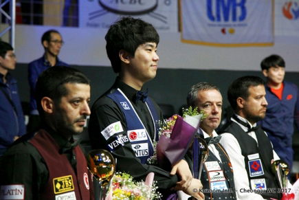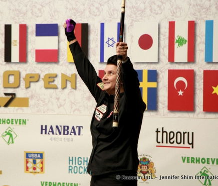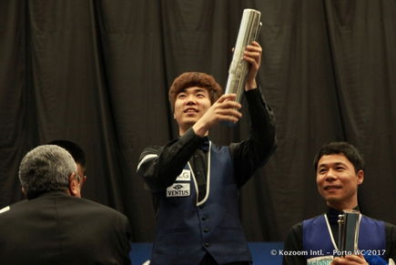 Con lágrimas de alegría y felicidad, Haeng-Jik Kim, de 25 años, celebró su victoria en la Copa del Mundo en la ciudad de Cheongju. El joven coreano, vitoreado por sus propios compañeros, derrotó a Murat Naci Coklu en la final (40-30 en 16) y pasa a la historia como el cuarto jugador en ganar dos Copas Mundiales consecutivas. Dani Sánchez se mantuvo como el número uno en el ranking mundial a pesar de su temprana eliminación. Haeng-Jik Kim ascendió al tercer lugar detrás de Sánchez y Jaspers. Kim es el nuevo líder en el ranking de la Copa Mundial después de cinco torneos.