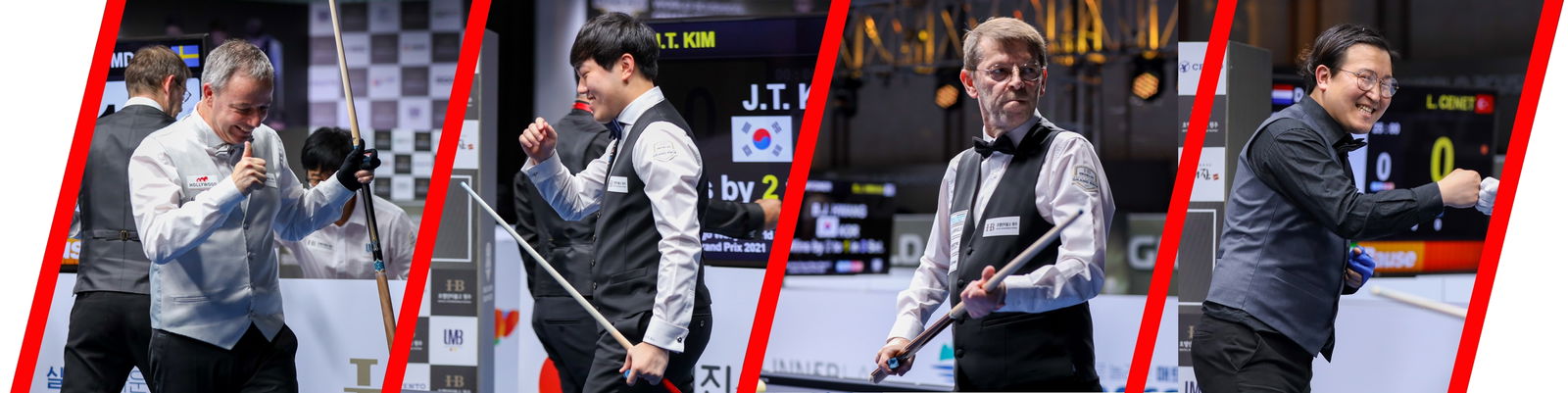 El cuarteto de finalistas todavía afronta otra importante jornada final en el Hotel Inter Burgo de Wonju. La apoteosis ha traído dos rutinas europeas y los mejores pistoleros en la etapa final: Dick Jaspers tiene 56 años y cuatro titulos mundiales, Torbjörn Blomdahl de 58 años y seis titulos mundiales. Los dos finalistas coreanos son relativamente desconocidos, aunque Jun Tae Kim, de 26 años, ya se ha presentado como el próximo super héroe oriental. Kim, ha ganado, entre otras cosas, el primer y último torneo Survival de la organización Five & Six. Bong-Ju Hwang tiene 38 años, el número 10 en la lista de clasificación coreana, pero un jugador completamente desconocido en el circuito internacional.