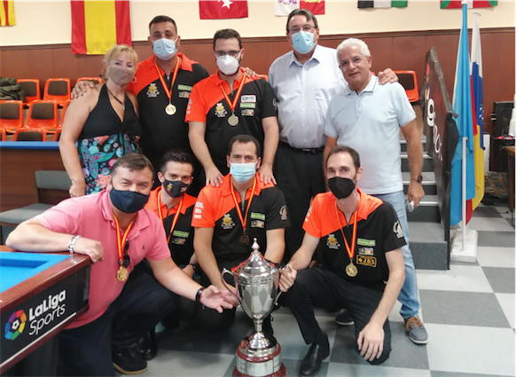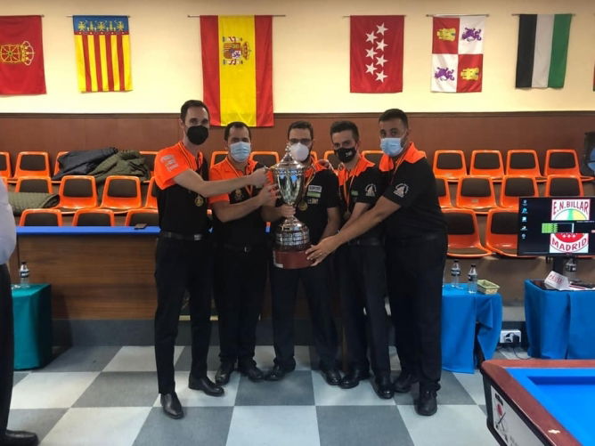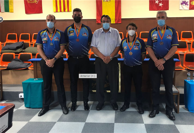 Paiporta presentó en Madrid a Javier Palazón, Sergio Jiménez, Xavier Yeste y Francisco Unguetti. Dicho cuarteto, además de Jorge Cantó y Miguel Herrero se colgaron el oro, aunque no Oímpico, al menos el más importante en la competición de tres bandas en España. Un equipazo que ha reafirmado su dominio con el segundo campeonato consecutivo conquisaado ayer.