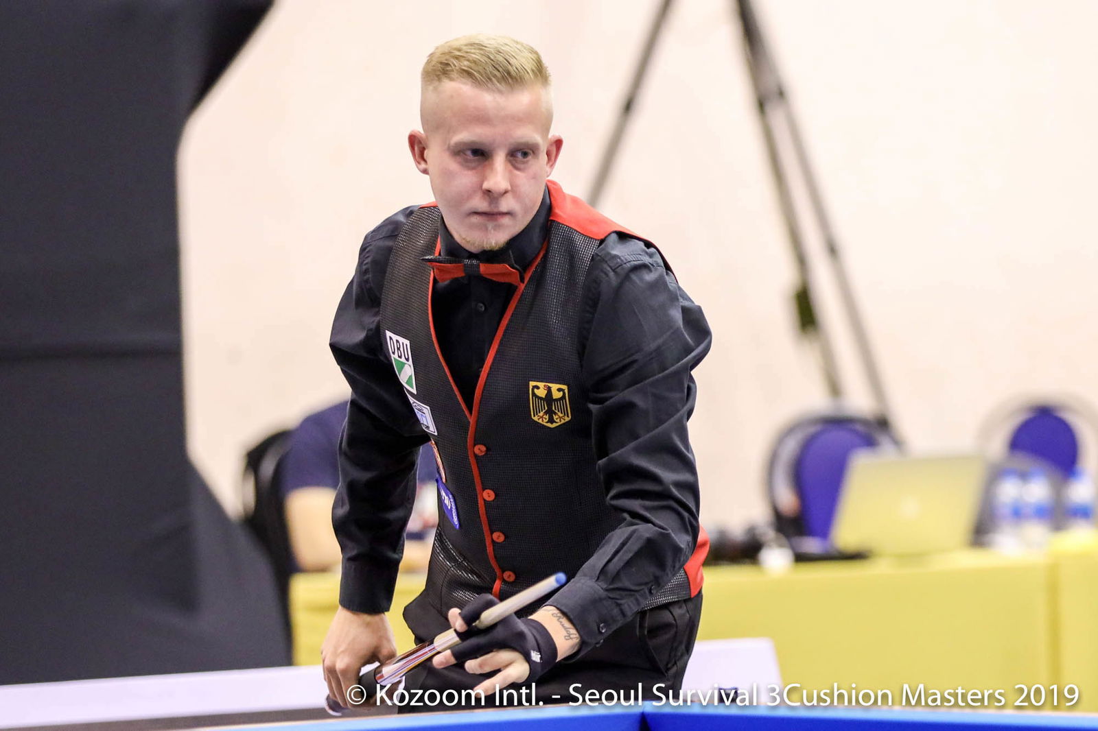 X Frans van Kuyk tuvo un comienzo volador contra Roland Forthomme con 15-3 en 3 y 21-9 en 8 y ganó 40-37 en 23