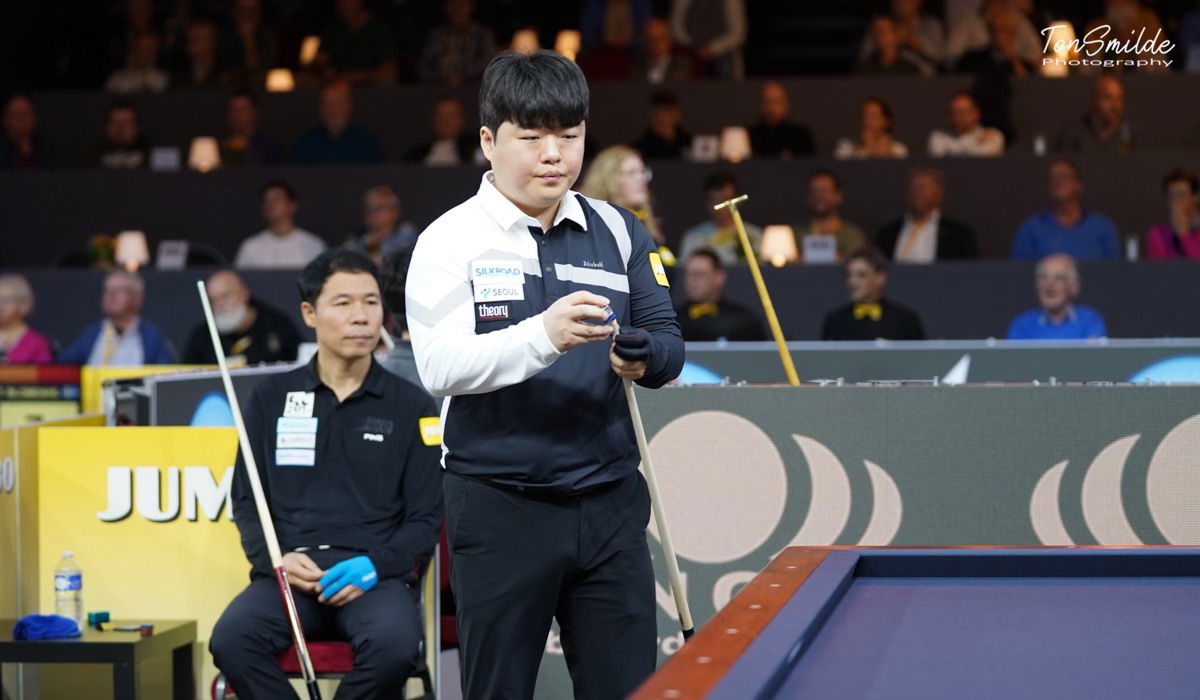 El jugador coreano Kim HJ se mantiene en el Top 10 y jugó unos buenos octavos de final contra Sam Van Etten 50-20 en 23 entradas.