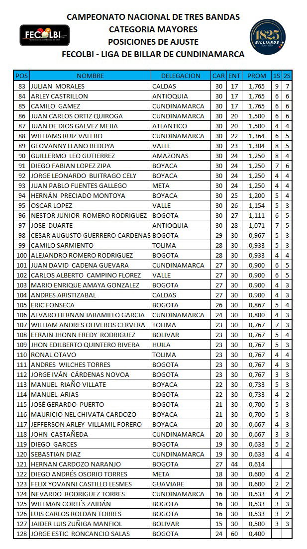 Después de una intensa primera ronda, 82 jugadores clasificaron directamente a la ronda de 128, mientras que 92 billaristas disputaron ayer la llamada "ronda de ajuste", en la que se entregaron 46 cupos adicionales para completar el cuadro principal.