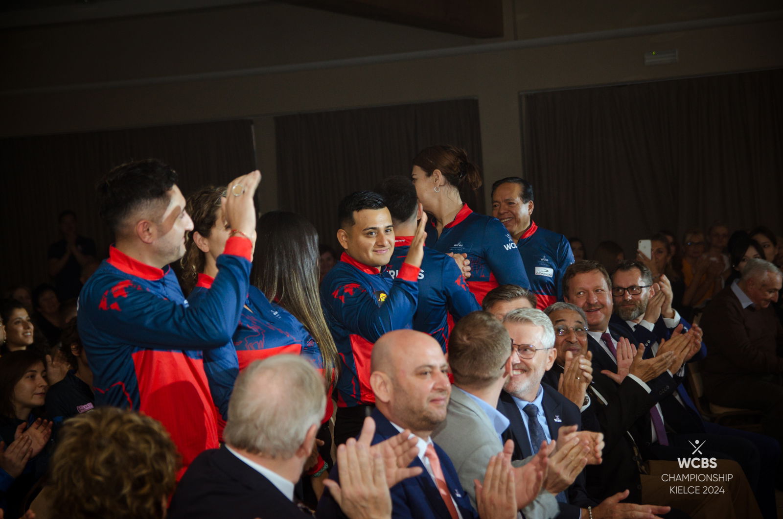 KIELCE/POLONIA - El equipo europeo B, conformado por ocho jugadores, lidera las clasificaciones en el segundo campeonato de la confederación mundial WCBS que se intensifica durante este fin de semana en Kielce, Polonia. El torneo cuenta con 48 jugadores de billar (24 hombres y 24 mujeres) en cuatro disciplinas: tres bandas, snooker, pool y heyball. Se han invitado a seis continentes con cuatro hombres y cuatro damas cada uno. Esta noche de sábado, tarde en américa, los cuatro mejores equipos se clasificarán para las semifinales. El equipo Europa B, conformado por Ruben Legazpi (España) y Karina Jetten (Países Bajos) en tres bandas, lidera tras dos días de competencia y tiene dos partidos más por jugar contra los equipos de Asia A y Asia B. Los equipos parcialmente clasificados en el penúltimo día de juego son Europa B, Asia B, Europa A y América. Torbjörn Blomdahl (Europa A) es una de las estrellas del evento hasta ahora con tres victorias y un empate contra Sameh Sidhom del equipo del Resto del Mundo. Los jugadores en las cuatro disciplinas reciben tres puntos para su equipo por cada victoria, dos puntos por un empate y un punto por una derrota. Las victorias de Blomdahl fueron contra Legazpi (40-39), el campeón mundial Phuong Vinh Bao (40-24) y el japonés Umeda (40-19).