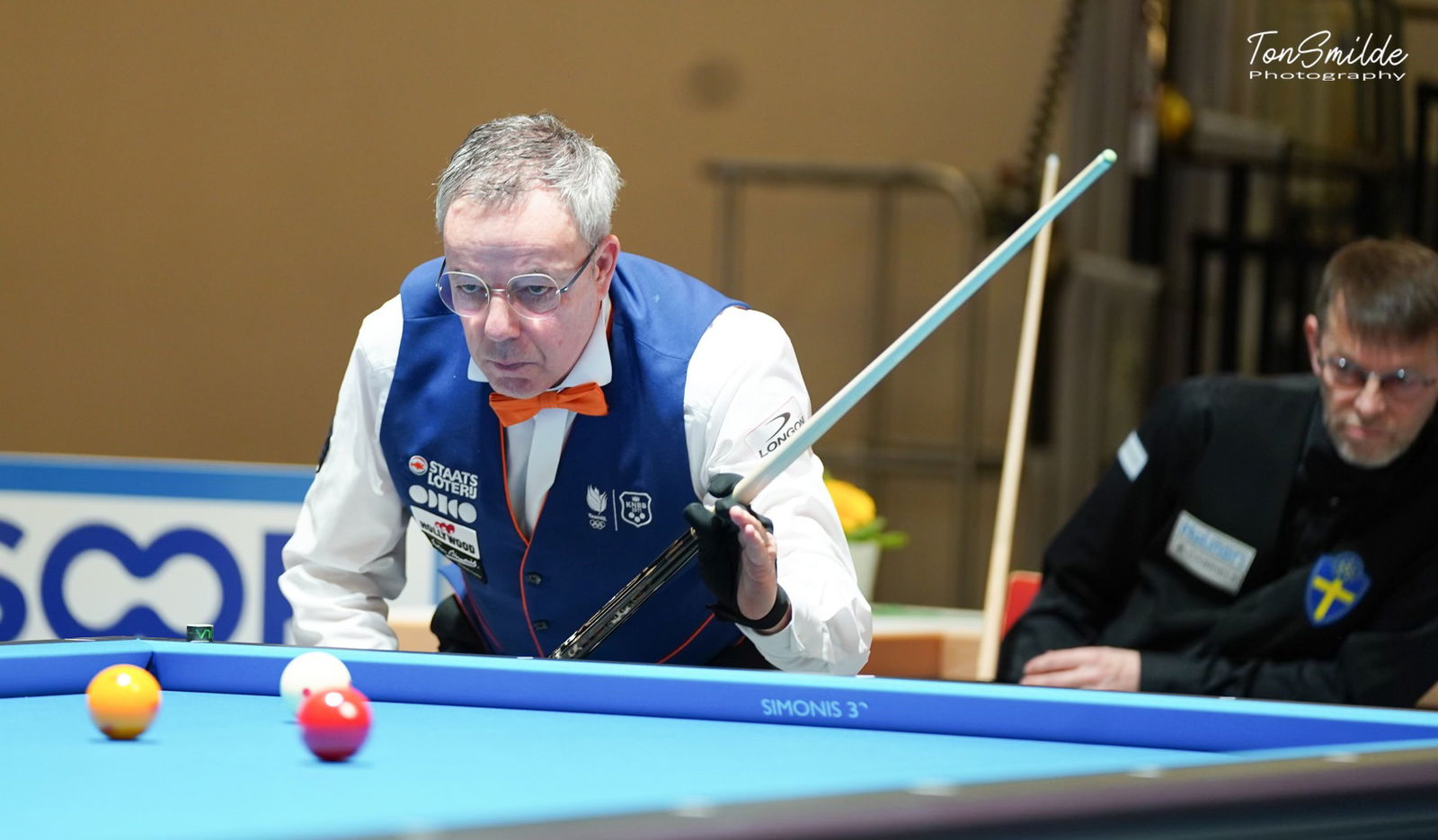 Con la victoria 4-0 de Países Bajos sobre Bélgica, los primeros lugares del Grupo C quedaron para Holanda y Suecia. Y no es casualidad que dos jugadores de estos países lideren también en puntos de partido y promedio. Blomdahl registra 2.307 de promedio en tres partidos, con su última victoria en 11 entradas; Glenn Hofman, también con 6 puntos de partido, promedia 1.812. El primer y segundo lugar del Grupo C ya estaban asegurados después de que Hofman venciera a Brants 40-21 en 19 entradas. Los belgas ya no podían superar a Países Bajos y Suecia. En los dos últimos partidos de la segunda jornada, Dick Jaspers derrotó a Eddy Merckx 40-31 en 26 entradas, y Pennör superó a Dimitrios Seleventas 40-39 en 28.