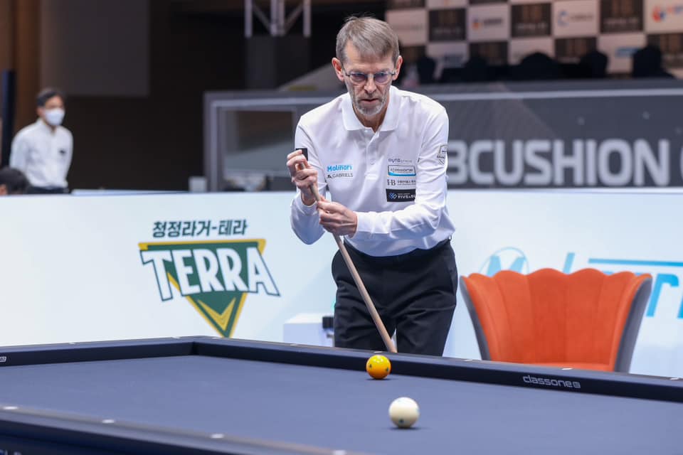 La diferencia de cuatro puntos es la puntuación al final. Eddy Merckx es el sorprendente capitán de su equipo al vencer a Polychronopoulos 41-27 en 13 (3,307). Dion Nelin desperdicia la ventaja contra Choong Bok Lee al perder 35-23 en 23, Bong Joo Hwang vence a Son 39-16, Jung Hee Lee gana contra la dama del equipo Merckx. Noriko Fukao pierde 38-15 en 25.