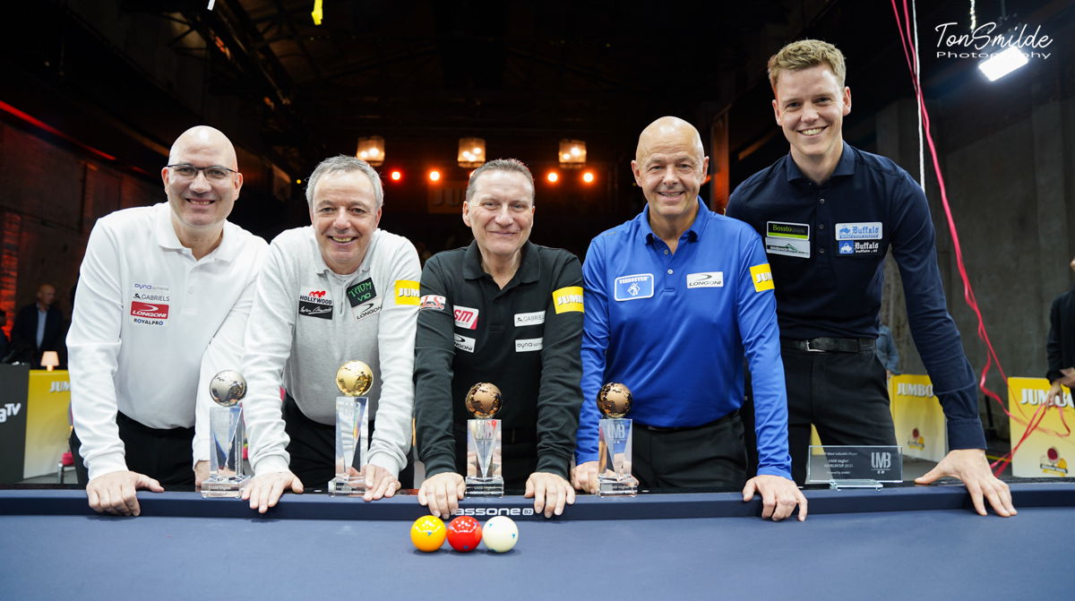 En una emocionante noche de tres bandas en Veghel, el multicampeón Dick Jaspers logró su primer título de Copa Mundo en la ciudad de Veghel y el 28º de su carrera en esta modalidad. Este logro aún faltaba en el impresionante currículum del holandés de 58 años de edad. Jugando ante su público, en un escenario lleno de espectadores, Jaspers venció al alemán Martin Horn en la final con un sorprendente marcador de 50-22 en 12 entradas, logrando un promedio único de 4.166, un nivel sin igual para una final de Copa Mundo. Además, el podio también contó con Eddy Merckx y Jean Paul de Bruijn, quienes se llevaron las medallas de bronce.El joven holandés Sam van Etten (27) fue galardonado con el premio de €500 al jugador revelación.
