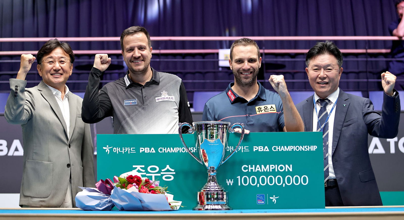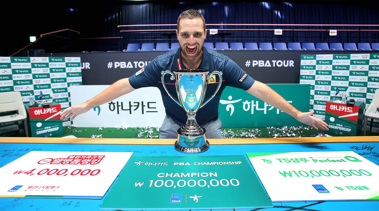 GOYANG – Los premios por la serie máxima y el mejor promedio de partida, han demostrado el gran nivel del español Javier Palazón. El tercer PBA Tour de esta temporada, se jugó por primera vez en el nuevo Kintex PBA Stadium, donde el español celebró su segunda victoria en el PBA Tour el viernes por la noche en Corea del Sur. Palazón triunfó en la final 4-3 en sets ante Lütfi Cenet, el turco que debutó en la liga profesional coreana este año. Javi Palazón, como le llaman sus amigos, padre de dos hijos, ganó una final a Min-gu Kang hace unos dos años con Frédéric Caudron y Savas Bulut en el podio. Ayer venció a Lütfi Cenet, el debutante de la PBA, con un remate de partida impecable (4-3, 11-1 en el set decisivo). Los promedios: para Palazón 1.867, para Cenet 1.244. La victoria final española fue histórica para la PBA: Palazón completó una 'triple corona' como se le llama a sus logros: victoria en el tercer PBA Tour, la jugosa recompensa por la serie más alta (15) en una entrada y el premio al mejor promedio logrado en una partida (2.478) . El valor total ganado fue de 114 millones de won coreanos, unos 84.000 euros.