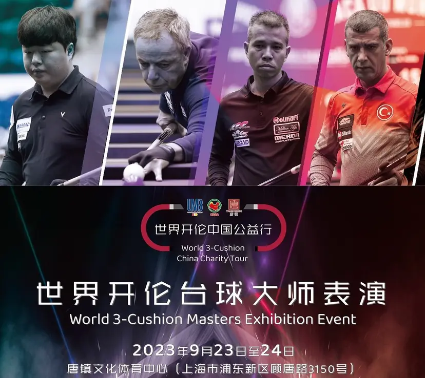 Para celebrar esta colaboración histórica, Shanghái albergará el primer evento de exhibición de 3-Bandas en China los días 23 y 24 de septiembre de 2023. Cuatro destacados jugadores de la UMB, Dick JASPERS (Ned), Tayfun TASDEMIR (TUR), Quyet Chien TRAN (VIE) y Myung Woo CHO (KOR), se enfrentarán en partidas de exhibición en dos sesiones diarias a partir de las 14:00, hora local. Además, se llevará a cabo una clínica deportiva para jóvenes jugadores chinos con el objetivo de introducir y promover la carambola en China.