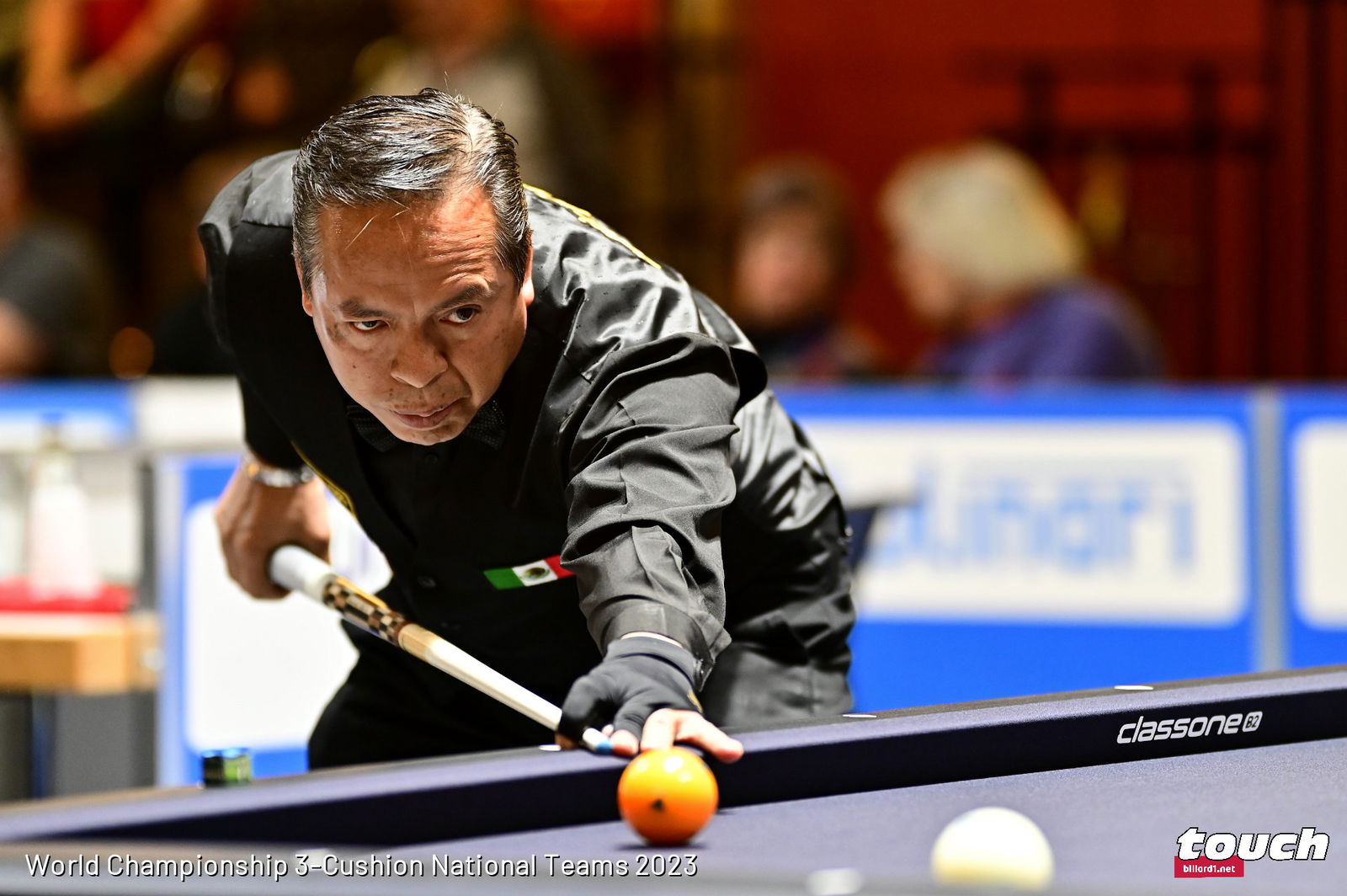 En el debut del Campeonato Mundial por Equipos, México logró sus primeros 4 puntos al obtener una doble victoria ante uno de los equipos favoritos, Corea del Sur. Hernández venció a H.J. Kim finalista el domingo en la Copa Mundo de Las Vegas 40-38 en 27 y Javier Vera venció a Jung Han Heo 40-34 en 29. Ayer en su segunda salida ante los locales, Hernández perdió con Martin Horn 40-29 en 25 , pero Vera se comportó como una verdadera máquina de hacer carambolas, al ganar 40-6 en 20 entradas. Aunque México aún no está clasificado, hoy en su último partido de grupos debe vencer a un Egipto eliminado, para avanzar a los cuartos de final.