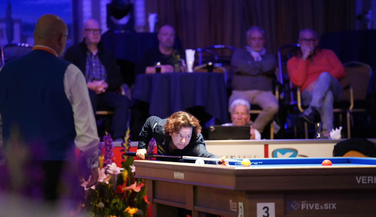 HEERHUGOWAARD - La actual campeona Therese Klompenhouwer mostró su gran clase en el inicio del 10º Campeonato Mundial Femenino de tres bandas. La holandesa superó los partidos de la fase de grupos sin problemas con cuatro puntos de partido y 1.250 de promedio. Se enfrenta hoy (miércoles) a la colombiana Andrea Cardona en el primer round de las eliminatorias. La coreana Shin Young Lee se acerca en promedio (0.926), la campeona coreana Jieun Han aún tiene que encontrar su ritmo y sentimiento, lo mismo para la danesa Charlotte Sörensen y la japonesa Yuko Nishimoto.