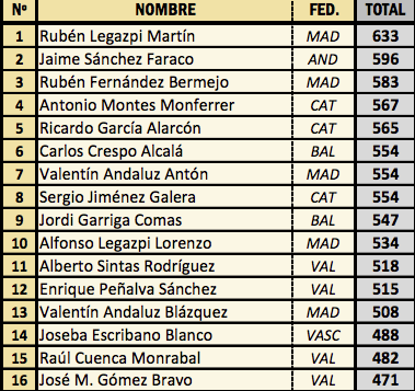 RANKING NACIONAL TRAS LA PRUEBA DE BAEZA