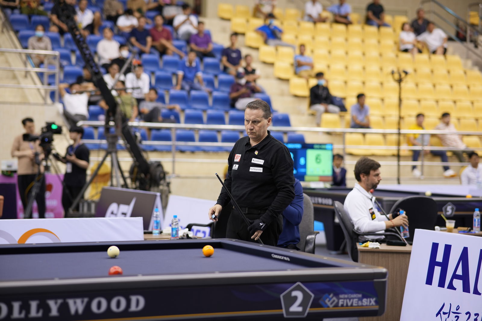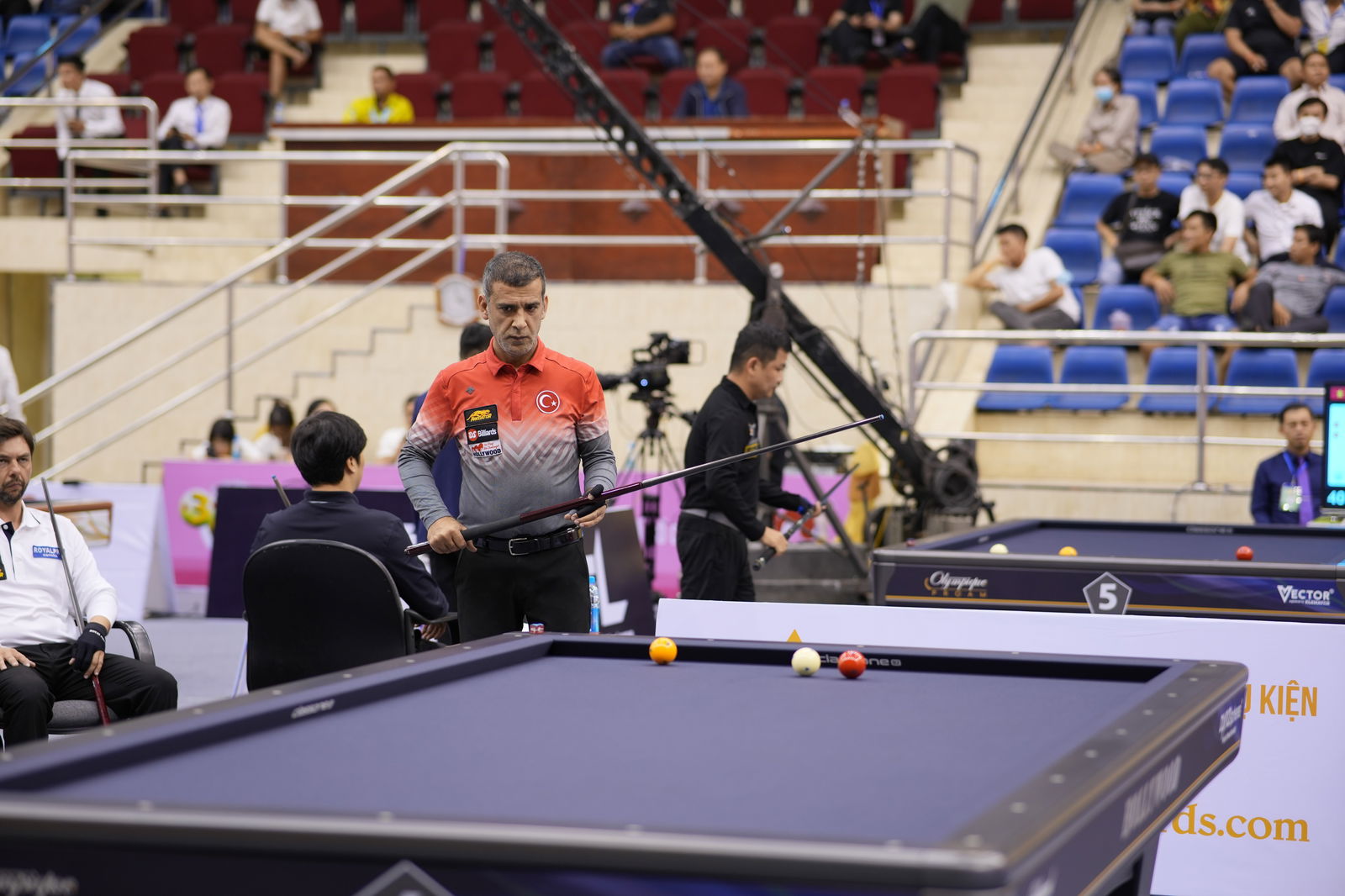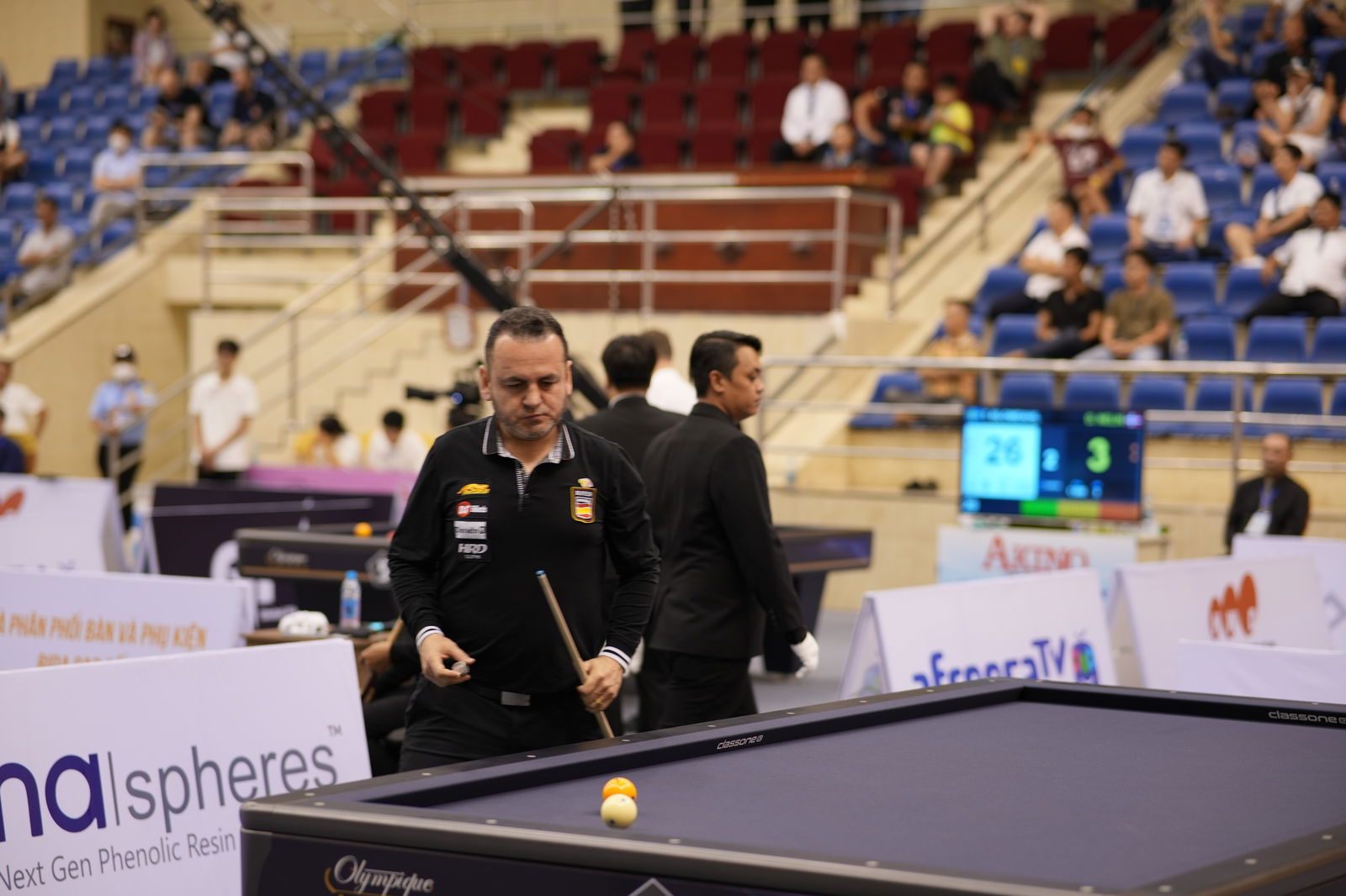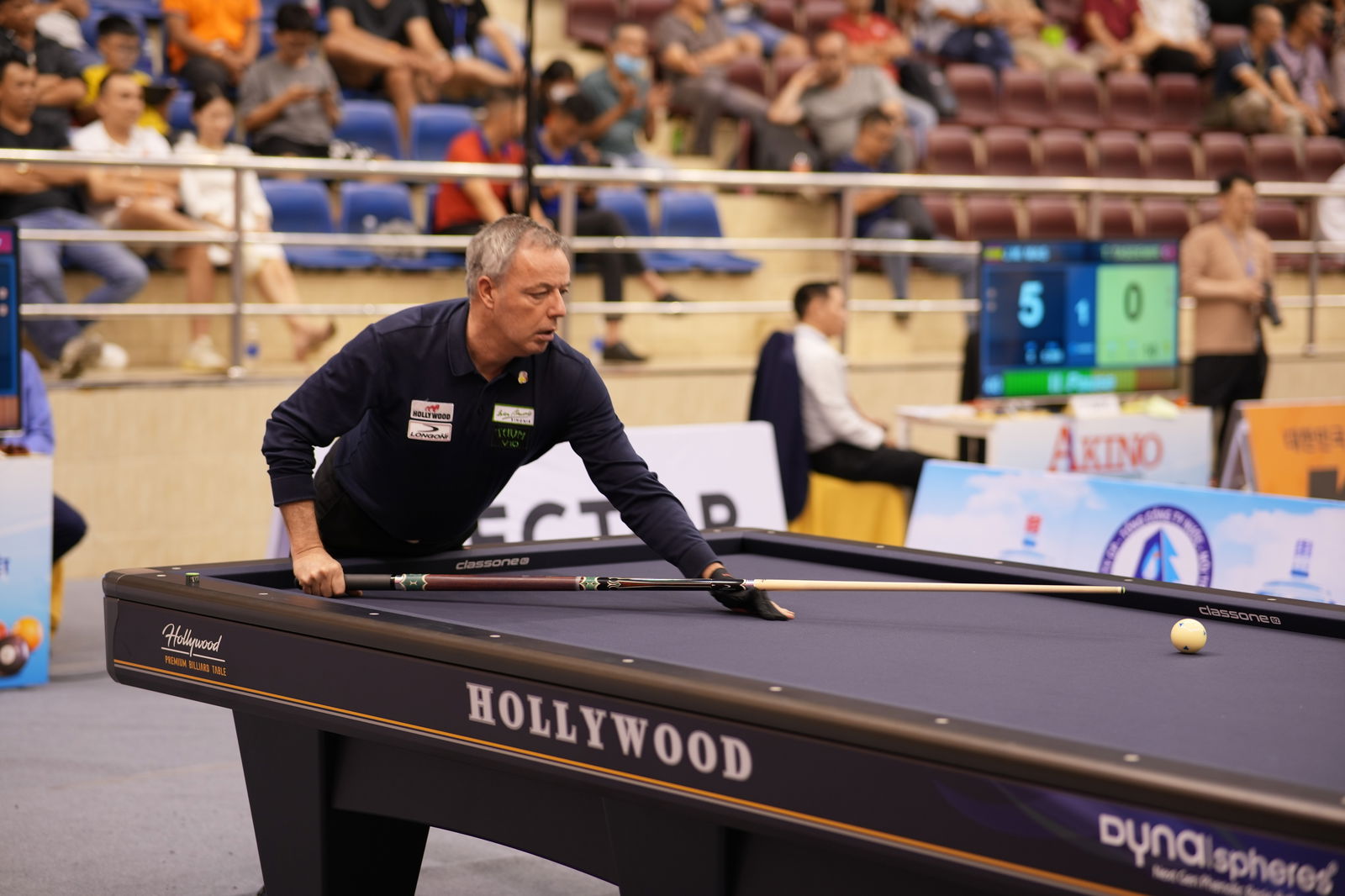 HO CHI MINH - El maestro en las primeras horas de la Copa del Mundo de Ho Chi Minh tuvo un comienzo espectacular. Torbjörn Blomdahl, de 60 años, abrió su misión en suelo vietnamita con una serie fenomenal de 26 puntos contra Dion Nelin. El duro golpe propinado a Nelin en la primera entrada, estuvo muy cerca de atacar el récord mundial de 28 carambolas obtenido por cuatro jugadores hasta el momento (Komori, Ceulemans, Caudron y Forthomme). Lo más destacado de este primer día en el cuadro principal puso inmediatamente al sueco en el papel como uno de los grandes adversarios para esta Copa. Blomdahl estuvo a tres carambolas del récord absoluto y del súper premio de 29.000 euros que entrega la UMB al jugador que supere el récord mundial. Otros jugadores destacados de este primer día incluyeron a Robinson Morales, el colombo español, venció al joven coreano Myung Woo Cho en un remate de partida 40-35 en 17 entradas y fue uno de los jugadores jugadores del día con un máximo de seis puntos de partido. La misma puntuación tambien la obtuvo Torbjörn Blomdahl (6-2.448-26), Tayfun Tasdemir (6-2.105-13), Robinson Morales (6-2.033-14), Sameh Sidhom (6-1.714-8) y Jun Tae Kim (6- 1,621-8). El mejor jugador en promedio fue Quyet Chien Tran, segundo en el grupo después de Blomdahl, con 2.609.