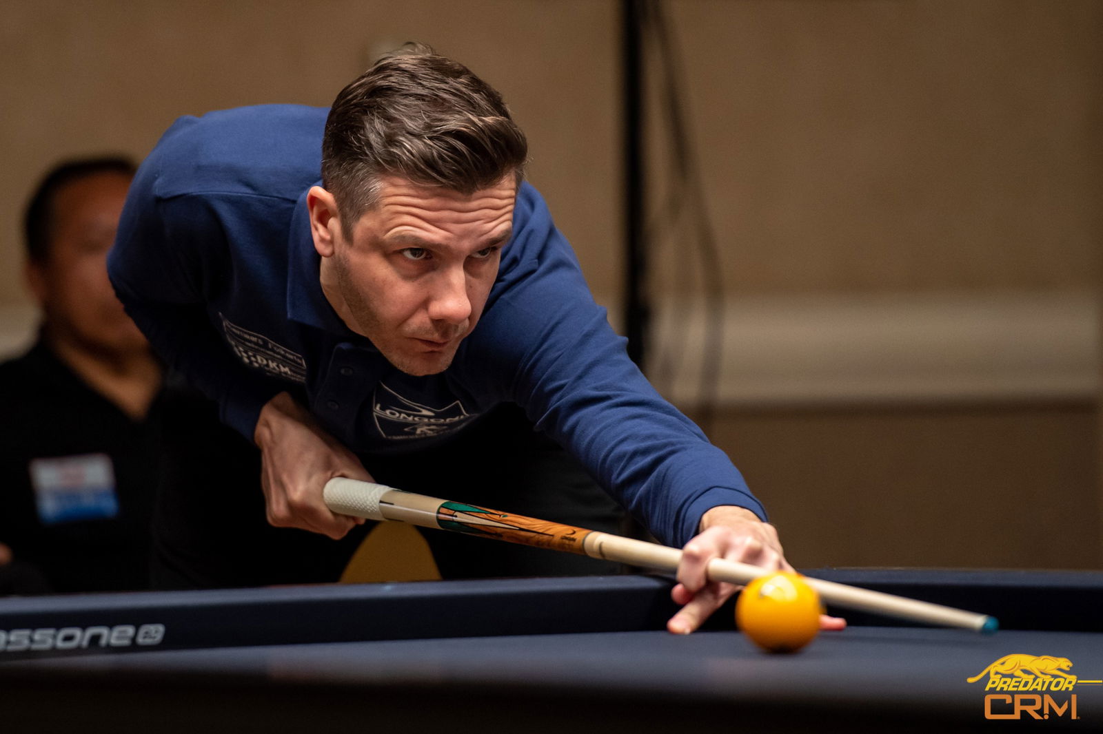 Dani Sánchez, venció a su compatriota y compañero de equipo Rubén Legazpi 40-24 en 25 en la primera sesión, siguiendo invicto con otra cómoda ventaja en sus partidos con Sung Il Jeong y Pedro Piedrabuena, terminando con1.846 de promedio. Sung Il Jeong avanza al top 16 en Las Vegas, Ruben Legazpi, con su impresionante serie de 20 contra Piedrabuena, quedó eliminado. La historia de Estados Unidos se acaba con la eliminación de Piedrabuena, Patiño y Villegas (1.107, 1.088 y 1.012).