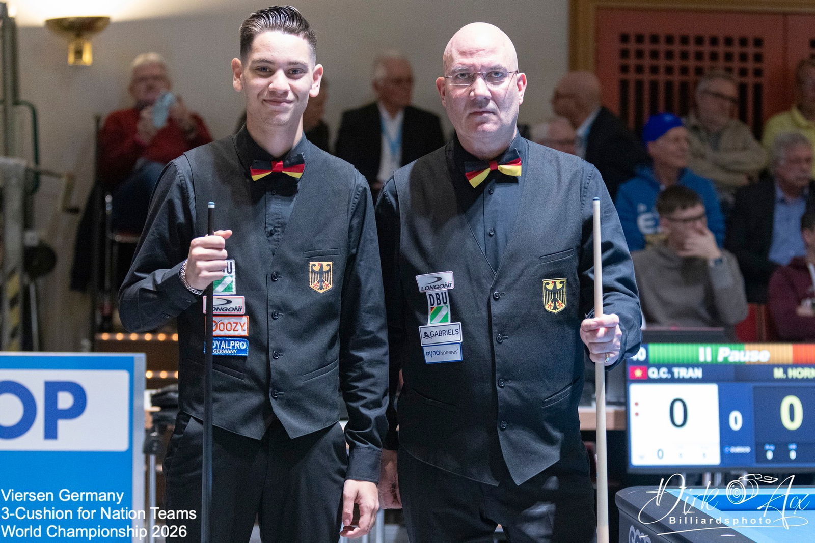 En el desempate, Alemania comenzó perdiendo 9-1, pero remontó hasta ponerse 11-10 arriba. Con el marcador 14-11, el joven Amir Ibraimov anotó la carambola decisiva y cayó en los brazos de Horn ante la euforia local.