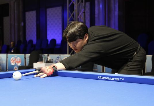 Le n°1 mondial Dick Jaspers termine invaincu et monte en régime avec trois victoires contre la révélation Jeong Ye-sung, Peter Ceulemans et la wildcard Jhon Fredy Martinez en 23, 21 et 16 reprises. Le Néerlandais signe une générale de 2,000 et la 2ème place qualificative se jouait entre le joueur belge et le joueur coréen sur le 3ème match : avantage à Peter Ceulemans pour une qualification à 4 points de match et 1,275 de moyenne. Jeong Ye-sung aura disputé 11 matchs depuis dimanche dernier à la moyenne de 1,346, un parcours remarquable ! Rappelons que ce joueur ne figure même pas au ranking UMB.
