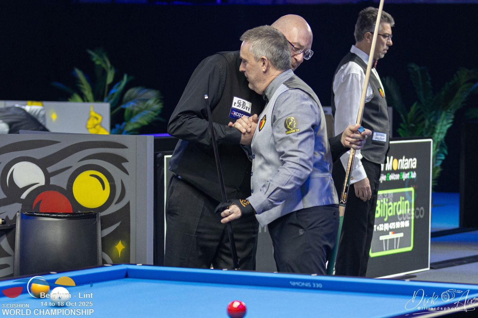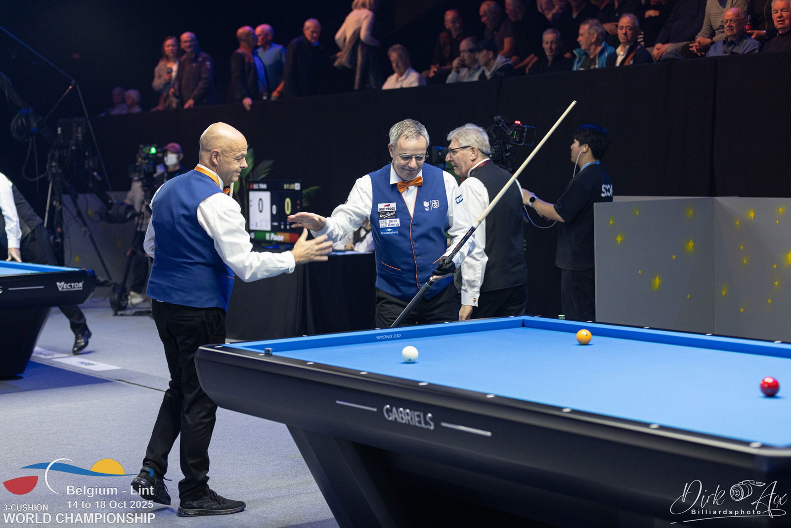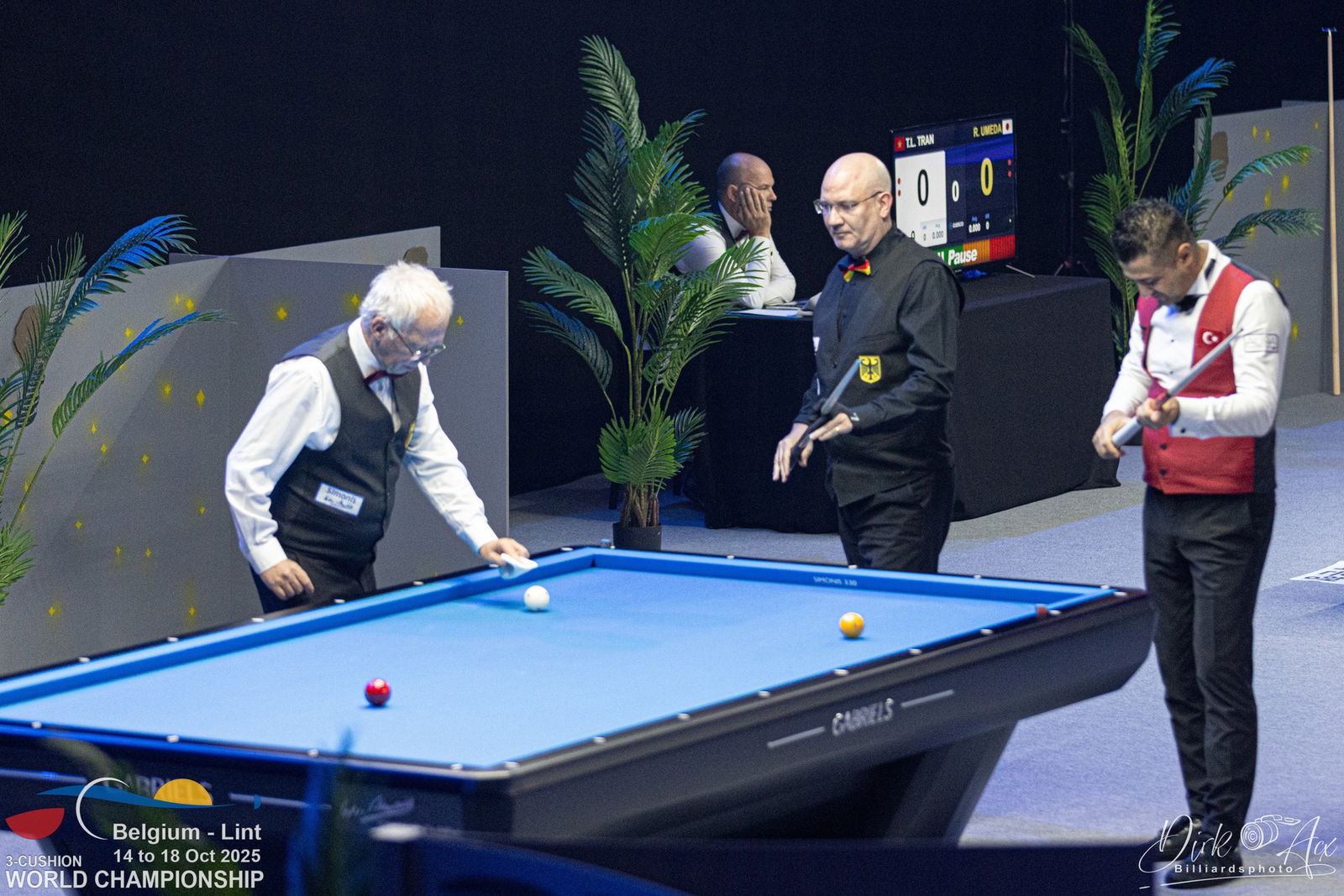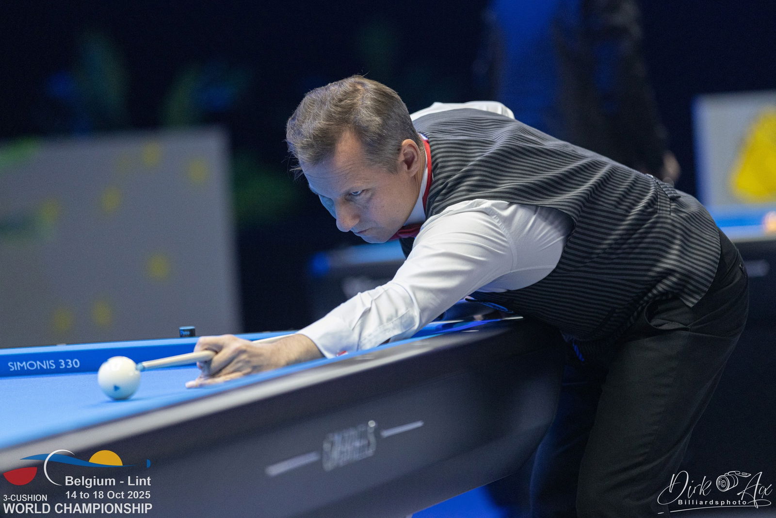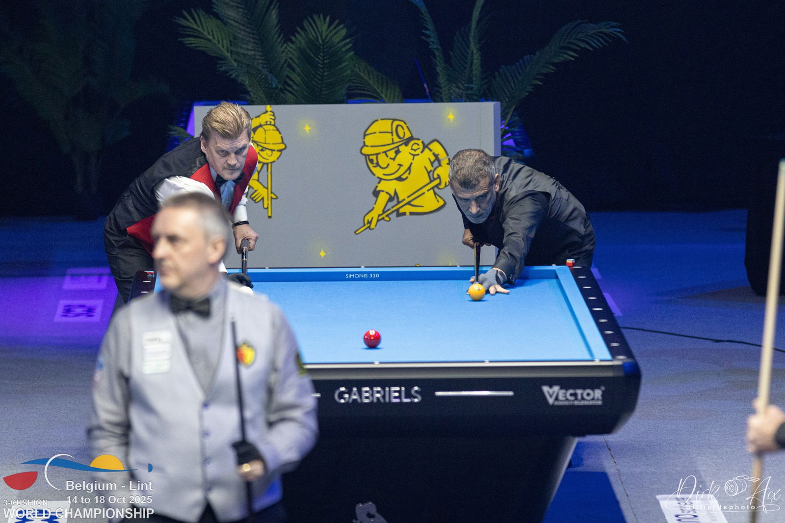 Il n’en a rien été dans la partie haute du tableau puisqu’on a assisté à une hécatombe au sein du Top 7 mondial. Les n°2, 4 et 7 mondiaux soit Dick Jaspers, Tran Quyet Chien et Tayfun Tasdemir se sont fait surprendre par Jean Paul de Bruijn, Lee Beom-yeol et Thomas Andersen, ces outsiders se situant entre la 60ème et la 107ème places mondiales. Thai Hong Chiem, si brillant la veille en évoluant à près de 2,400 en qualification, s’est lui aussi fait surprendre pour 2 points par un super Arnim Kahofer qui a joué à 2 de moyenne sur cette partie et à plus de 1,700 sur ses 3 premiers matchs.