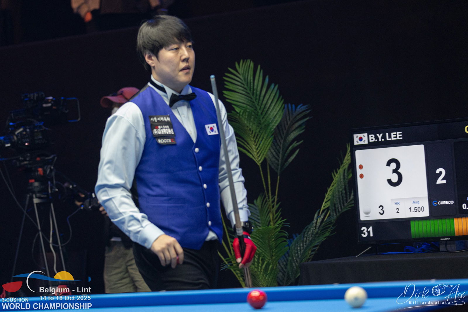 Dans la partie basse du tableau, 8 matchs étaient au programme dont ceux des deux seuls Français Jérémy Bury - opposé à Miguel Soares, et Mikael Devogelaere, opposé à Marco Zanetti. Le premier à se qualifier en 3ème session risquait de perdre son titre mondial 2024, Myung-woo Cho était opposé au dangereux Kim Haeng-jik et le plus jeune des deux s’impose 50-38 en 23 reprises après avoir mené toute la partie ou presque depuis sa série précoce de 11.