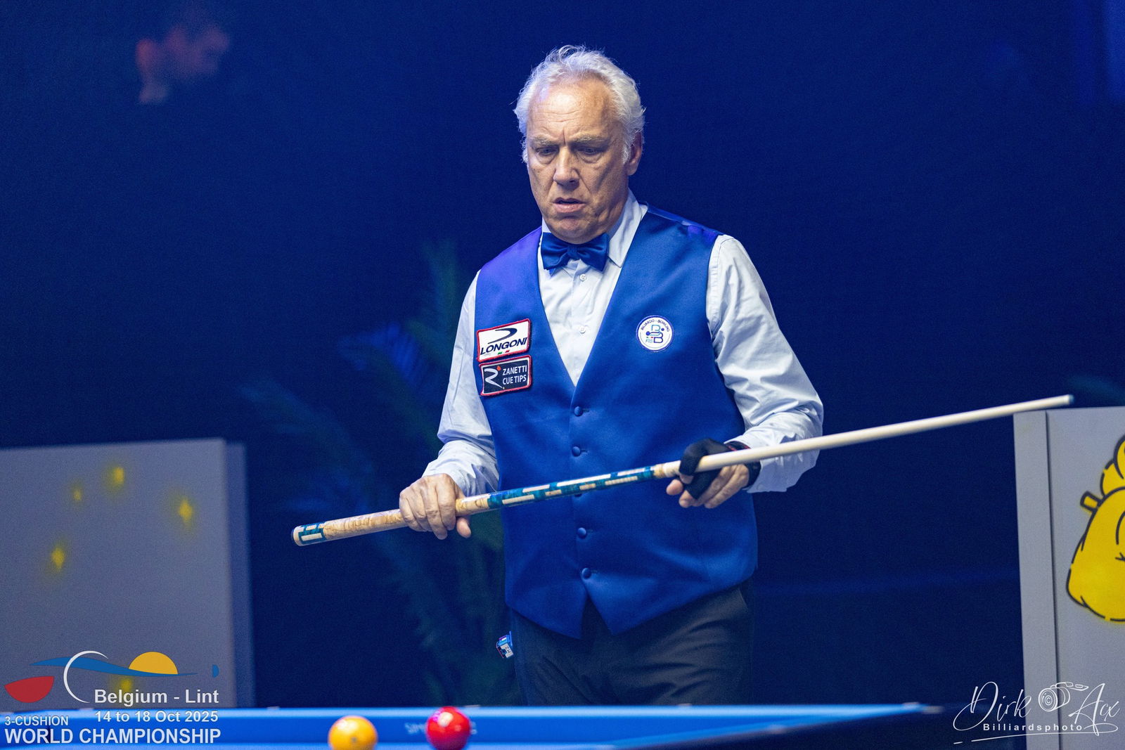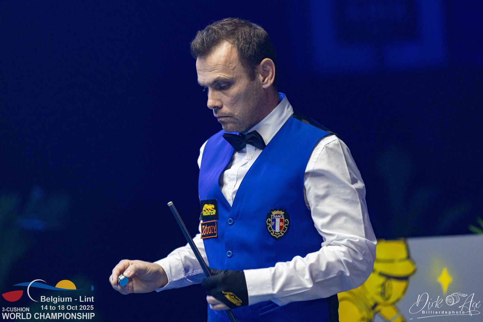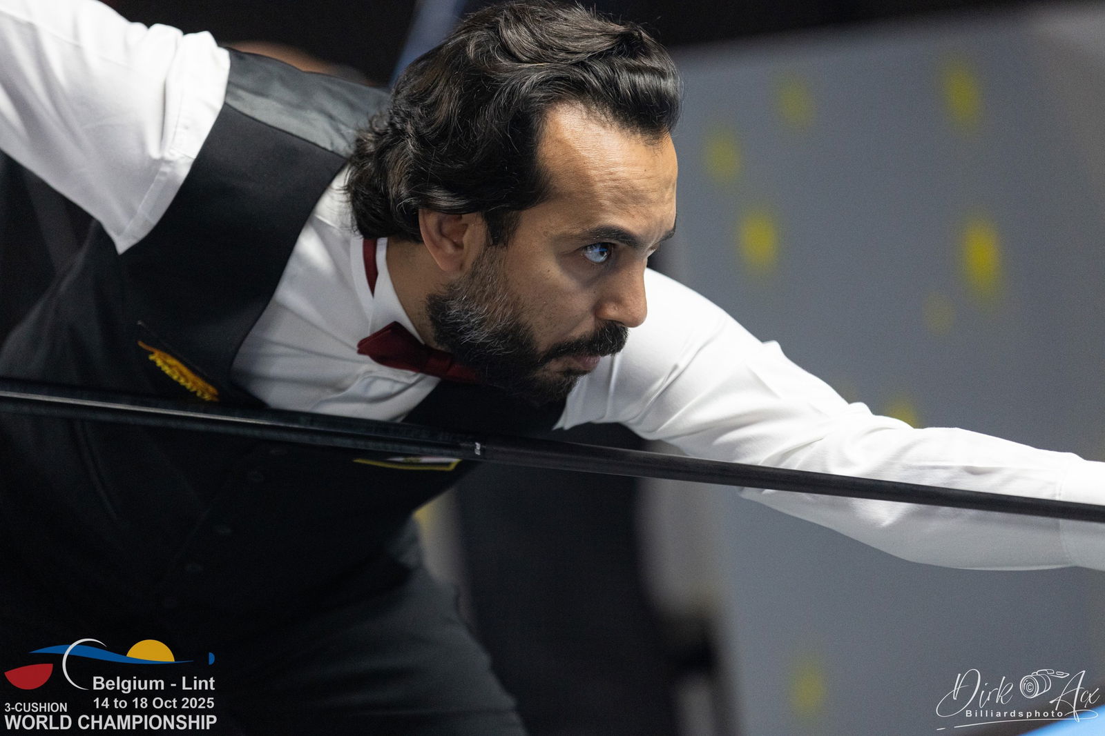 Marco Zanetti suit 50-28 en 24 reprises face à Mikael Devogelaere, l’Italien termine sur 4-10-4-1 ! Devogelaere à joué à près de 1,400 sur cette épreuve. Jérémy Bury domine Jose Miguel Soares du début à la fin et confirme sa très bonne forme dans ce championnat du monde et plus globalement sur l’ensemble de ces deux semaines. Il s’impose 50-28 en 28/27 reprises. Le n°1 français évolue à 2,063 sur ses trois premiers matchs. Nikos Polychronopoulos, dans un match marathon contre Mohamed Abdin, gagne son ticket pour les huitièmes sur la marque de 50-48 en 56 reprises !!