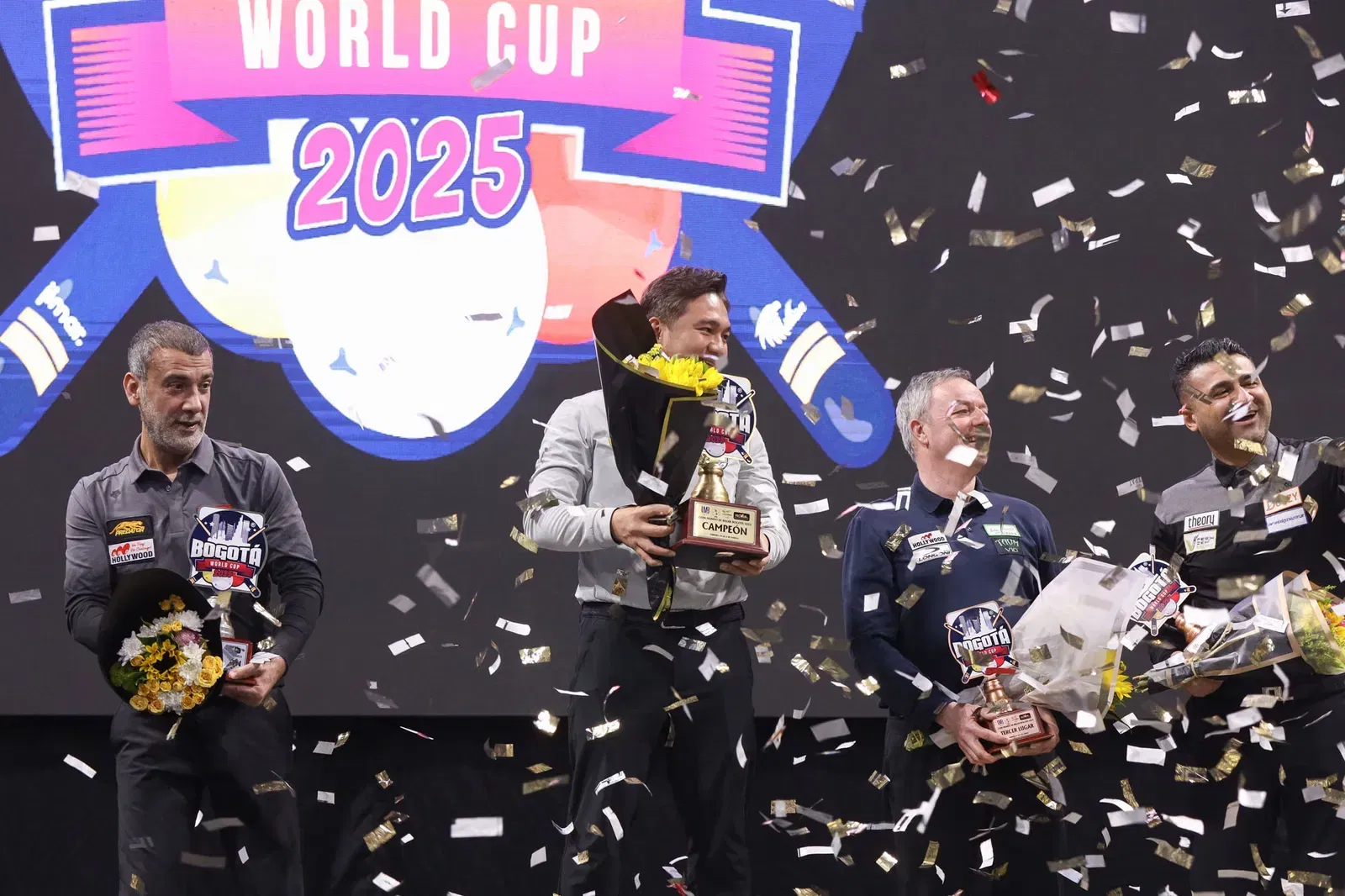 Frédéric Caudron est Champion du monde 2025 aux 3 Bandes devant ses propres fans. Le n°1 mondial Myung Woo Cho a connu une excellente année en remportant le circuit des World Cups 2025 et les World Games. Tran Thanh Luc a remporté sa première World Cup à Bogota tandis que son compatriote Tran Quyet Chien a merveilleusement clôturé l’année avec une précieuse victoire au Doozy Challenge de Blois.