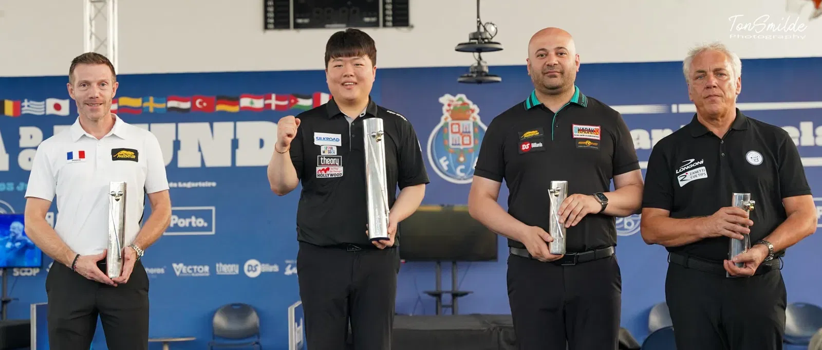 Myung-woo Cho avait commencé fort pour son 1er match en L32 face à Rui Costa avec 27 points en 3 reprises dont une série de 18. Il termine ses 40 points en 15 reprises sur ce match. Il est ensuite battu par Dao Van Ly 32-40 en 22 avant de se qualifier contre Viet Hong Minh Thon 40-37 en 21 reprises. Il signe ensuite le vendredi deux succès contre Tolgahan Kiraz à 1,724 et contre Eddy Merckx à 1,851 (série de 15 alors qu’il était mené 33-41 par le Belge), 50-47 en 27 reprises. En demi-finale, il domine Gökhan Salman 50-24 en 22/21 reprises avec 6-6-0-2-9 pour finir.