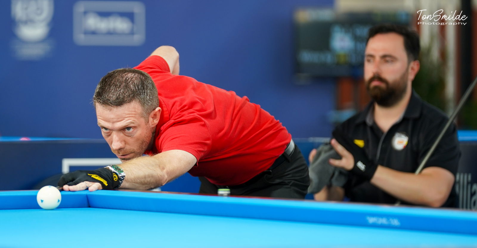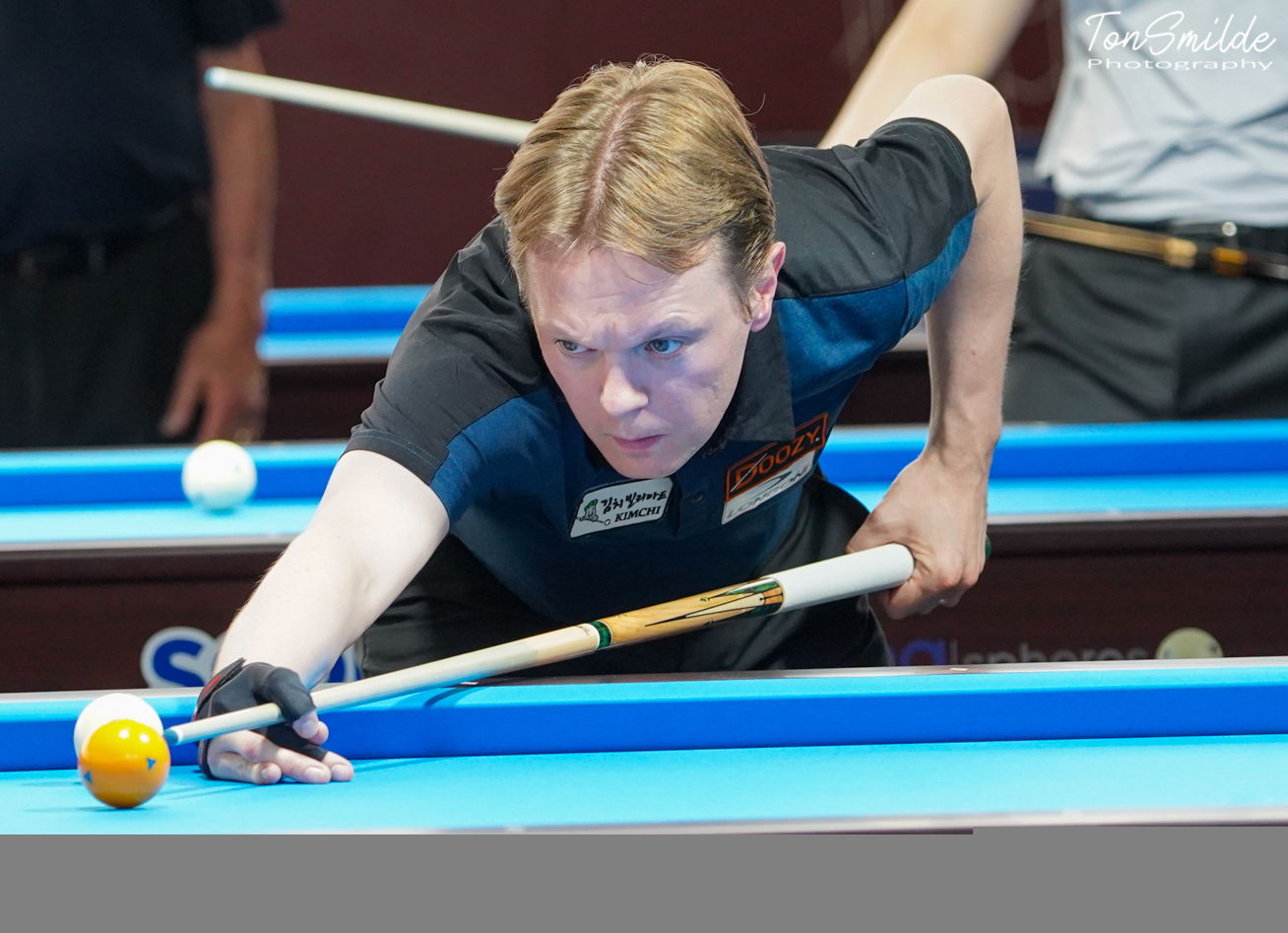 Dans le groupe A, le n°1 mondial Dick Jaspers est éliminé lors d’un 3ème match au couteau face à Frédéric Caudron. L’affiche était belle, les deux hommes se sont retrouvés à 34-34 à la 26ème reprise, Jaspers marque 1 sur la 27ème, Caudron termine sur 6. Haeng-jik Kim s’était assuré l’une des deux places en battant Dick Jaspers 40-33 en 17 reprises (séries 13 et 10) et la wildcard libanaise, Jihad Kolfad. Le deuxième accessit revenait à Jaspers ou Caudron et c’est le Belge qui s’empare de la 1ère place de groupe, invaincu à 1,428 de moyenne.