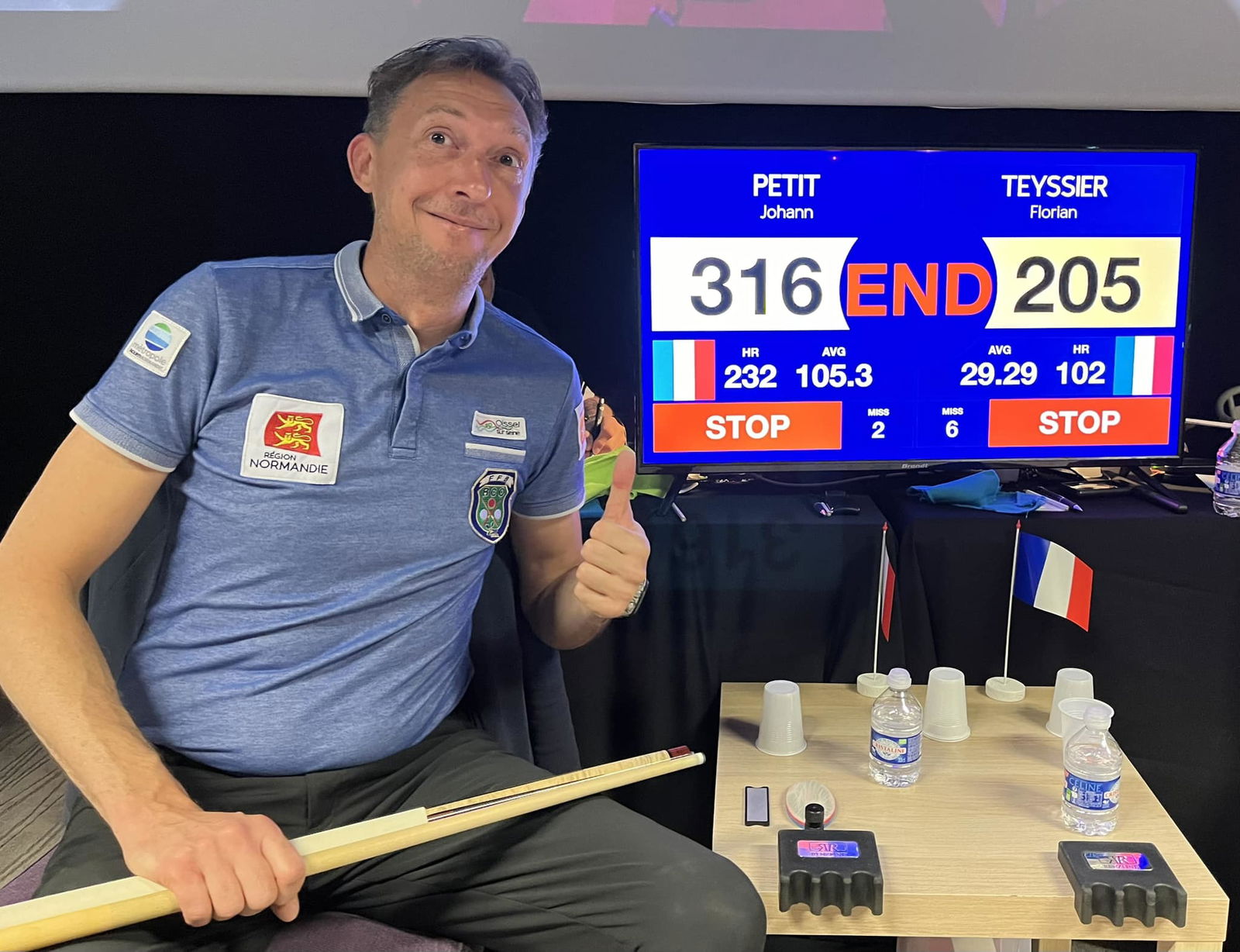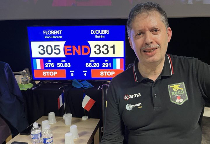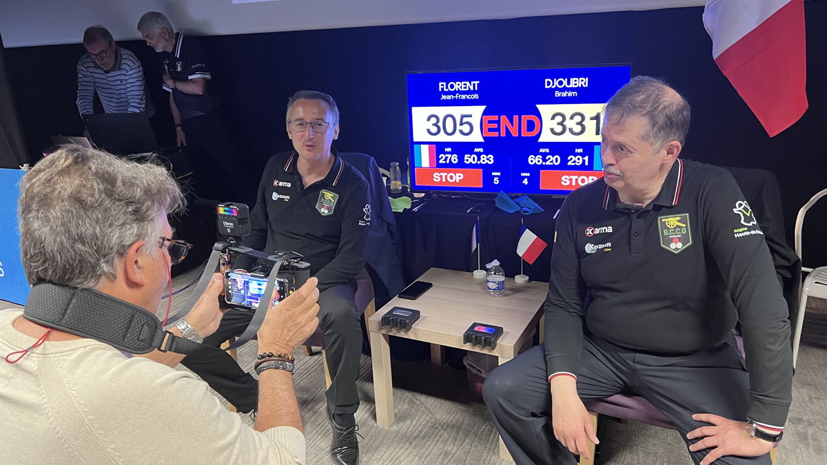 Au terme des 5 premières minutes de la finale, le score était de 18-10 pour Jean-François Florent, le rythme est ensuite monté d’un cran : 321 points en 25 minutes pour Brahim Djoubri, près de 13 points/minutes soit un point toutes les 5 secondes !