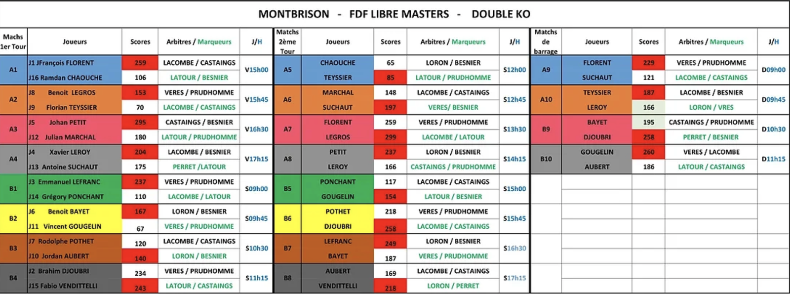 Les résultats ci-dessous sont partiels et la plupart des parties peuvent être revisionnées en replay sur Kozoom ! Un grand bravo à Brahim Djoubri pour son titre, à Jean-François Florent, Johann Petit et Emmanuel Lefranc pour les accessits et à l’ensemble des joueurs, arbitres et bénévoles, acteurs de ce rendez-vous. Les images procurées par Kozoom avec cette incrustation à 4 plans de vue en plus de la loupe était somptueuse pour apprécier les nuances des enchainements, Morgan et Lorenzo méritent d’être félicités pour leur excellence en la matière !