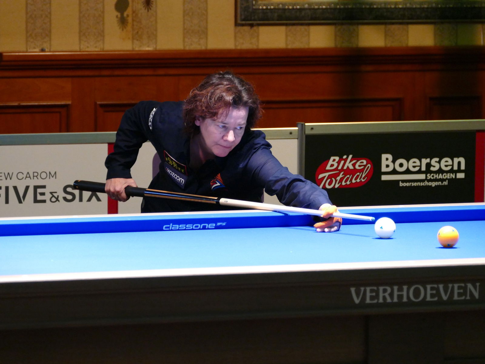 Parmi les Dames, Müjde Karakasli échoue le lundi à près de 0,700, Karina Jetten gagne un match contre Daniel Kristiansen à 0,900 mais elle est éliminée à 0,800 de générale après avoir encaissé le meilleur match du jour (9-30 en 11) par Hoan Tat Nguyen. La joueuse grecque Litsa Mavridoglou est éliminée avec une victoire et une défaite à 0,477. Gülsen Degener parvient à arracher un bon match nul à 0,909 contre Georgios Tsokantas mais se classe 3ème de groupe à 0,741.