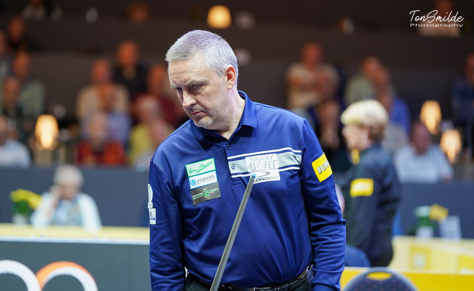 Le n°1 mondial Dick Jaspers totalise 410 points sur ces 11 épreuves soit 37 points en moyenne par épreuve. Frédéric Caudron devra remporter Veghel pour être sur ces bases, ça lui ferait 146 points sur 4 épreuves soit 36 points en moyenne. Il est surtout celui qui joue le mieux jusqu’à présent dixit le Néerlandais ! Le Belge avait joué sa dernière saison à l’UMB en 2019 et affichait alors une moyenne annuelle de 2,139 de mémoire (81 matchs), une performance inégalée dans l’histoire du 3 Bandes !!