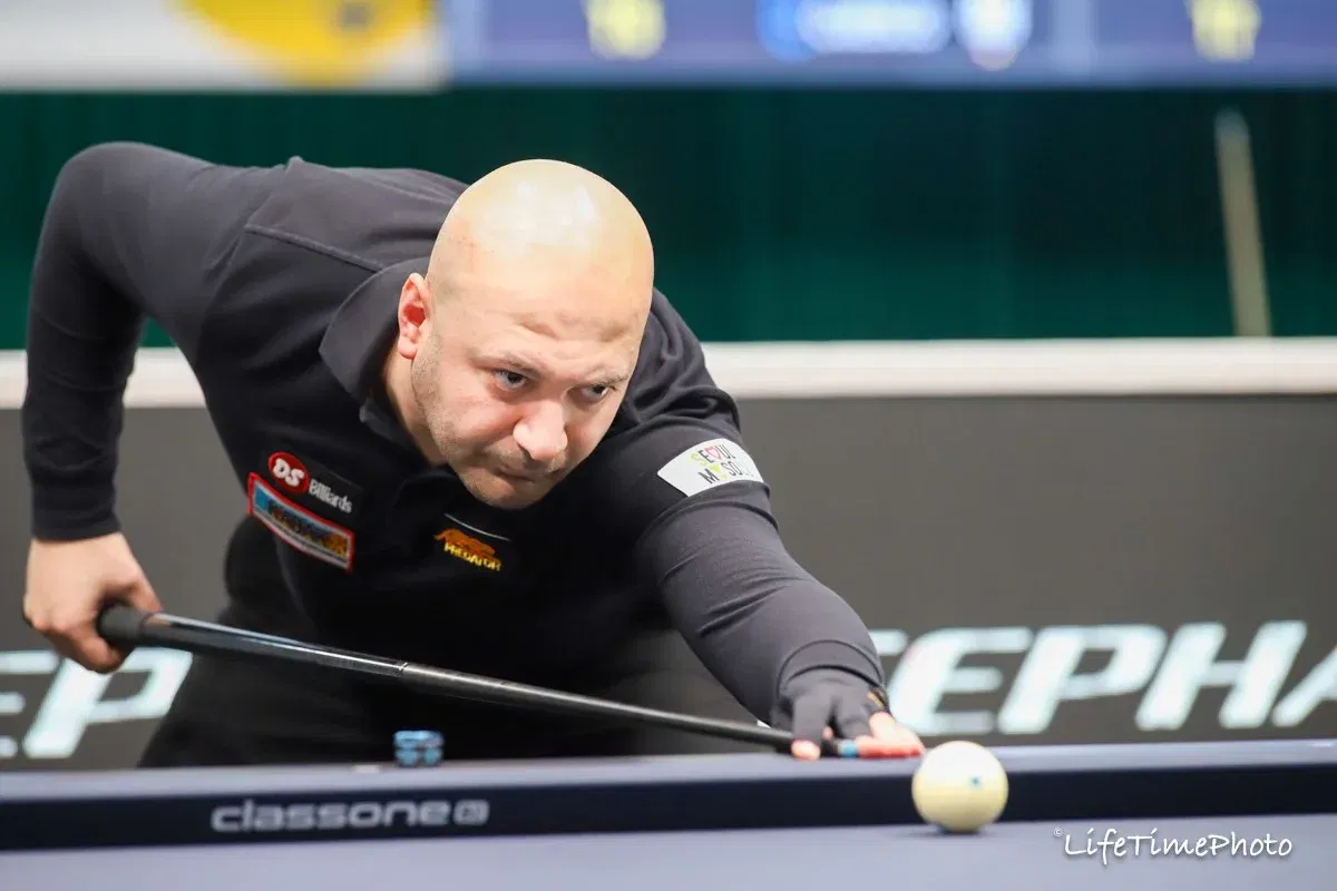 Un autre joueur retient l’attention ce soir, il s’agit de Roland Forthomme, éliminé. Réalisateur de la meilleure série provisoire de cette épreuve avec 18 lors de la 2ème reprise de son premier match face à Arnim Kahofer, le Belge affichait 34 points en 10 reprises avant de boucler sa partie de 40 points 16 reprises plus tard. Il subira ensuite une défaite contre le Coréen Park Su-yeong 22-40 en 34 reprises.